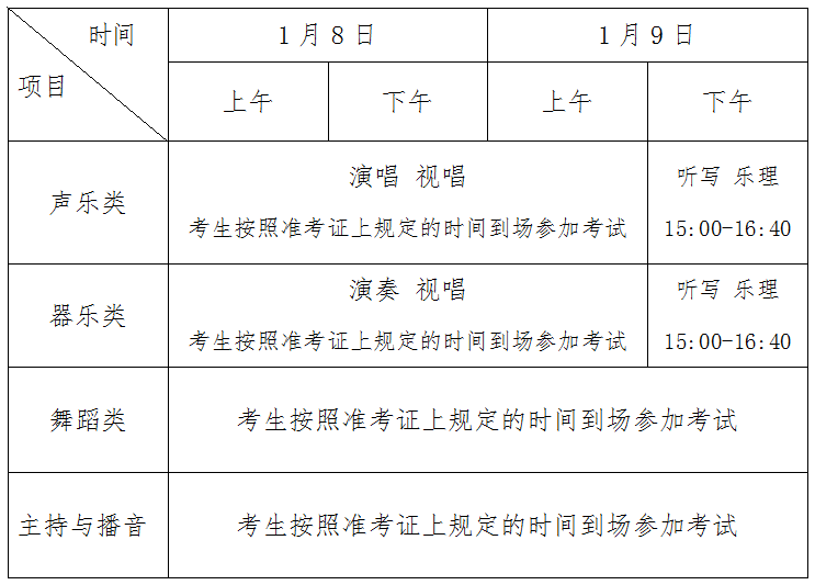 5.主持与播音类专业考试科目:新闻播报、作品朗读、即兴主持、才艺展示。