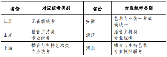 苏州大学播音与主持艺术专业与各省级统考科类对照表