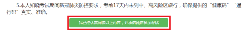 5. 《考生须知》阅读完成后,请开始阅读《报考承诺书》,阅读完成后请点击“我已经认真阅读以上内容,并承诺诚信参加考试”。