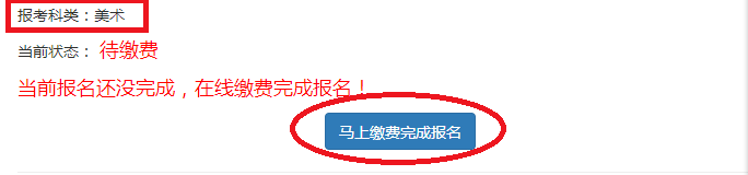 11.报名完成后,核对“报考类别”等内容,确认无误后点击“马上缴费完成报名”。
