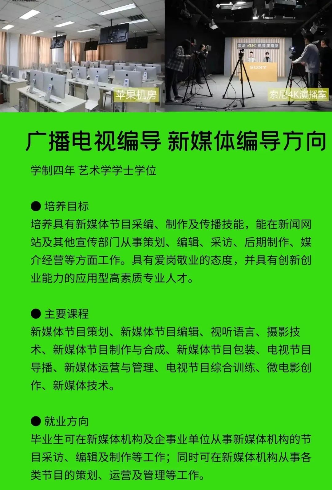 学校位于北京市大兴国际机场空港区,北京市文化创意产业密集区,以国家新媒体产业基地、星光影视城等为实践基地,区域内文化产业发达,特色明显,就业前景广阔。
