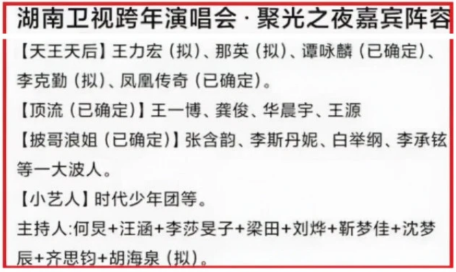 湖南卫视跨年夜晚会主持阵容疑似曝光:一代新人换旧人