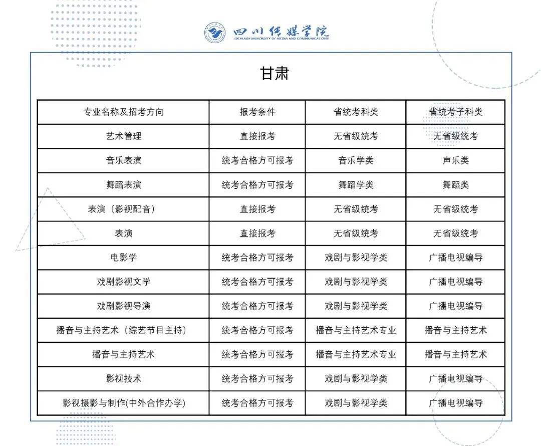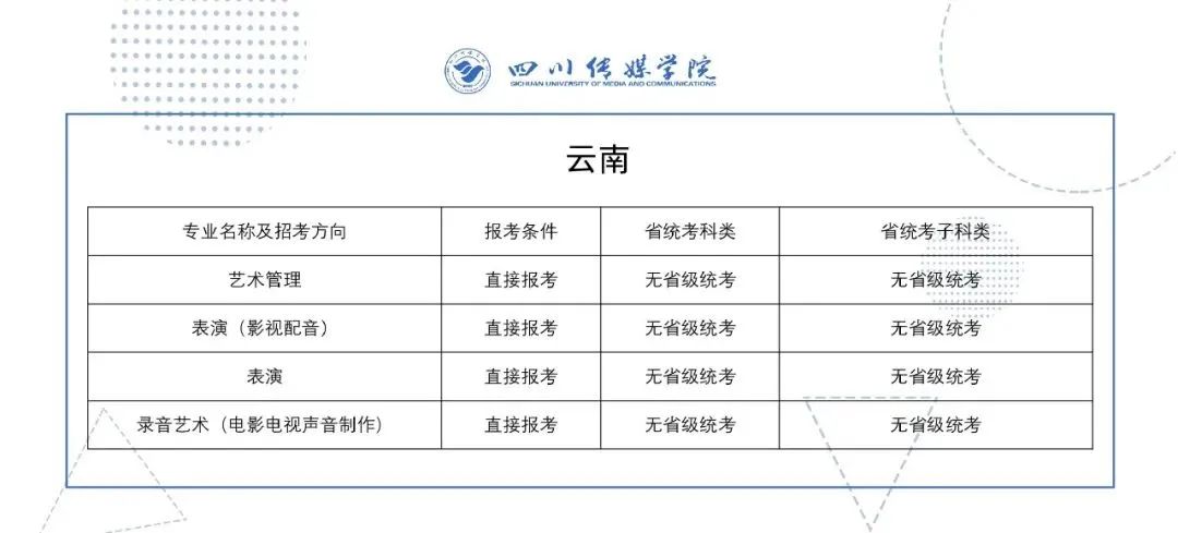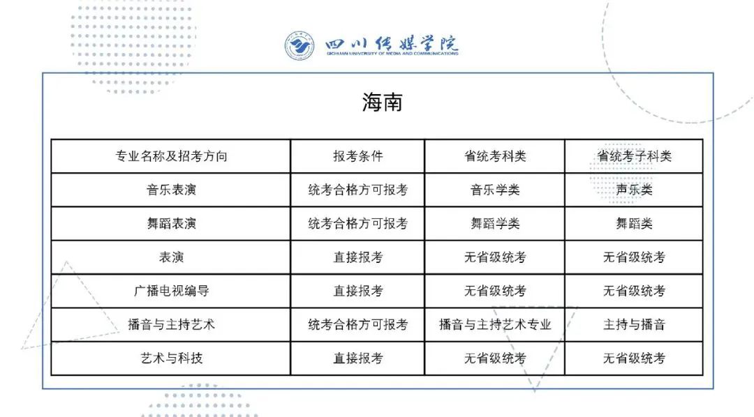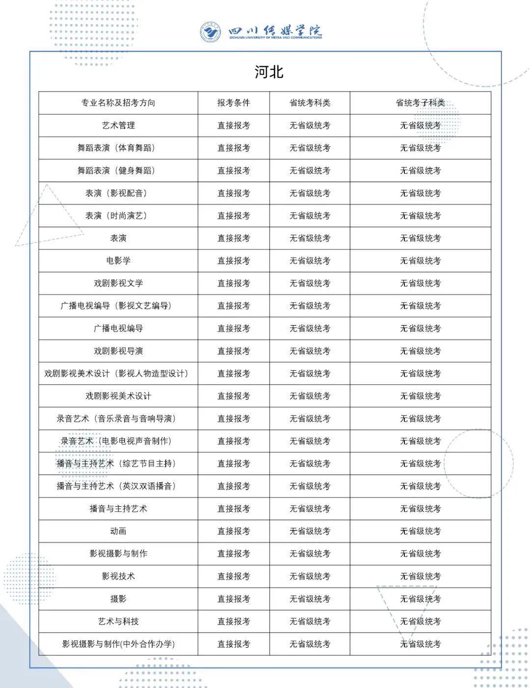 3.艺术类省级统考未涵盖的校考专业,考生可直接报名参加学校艺术类专业校考。