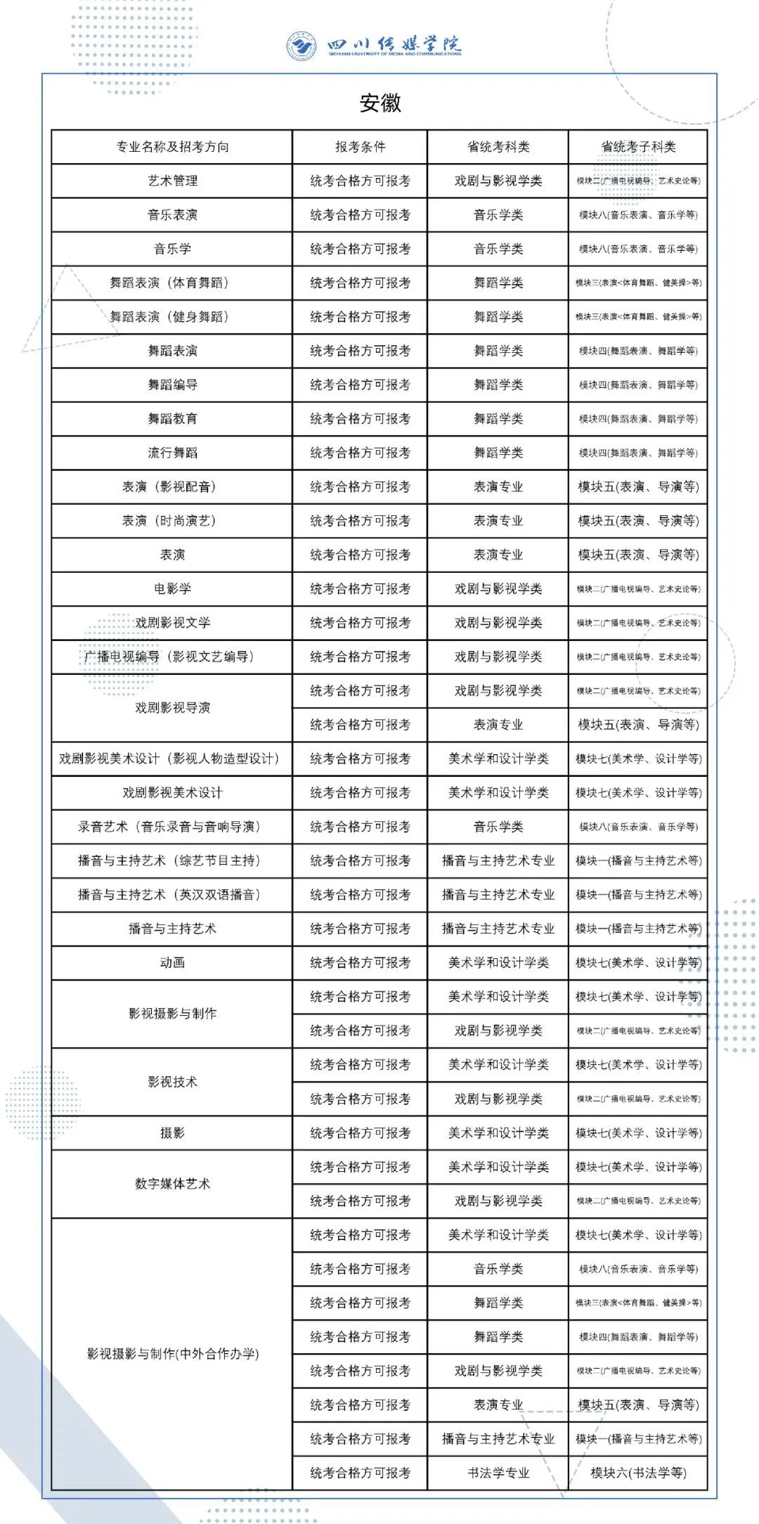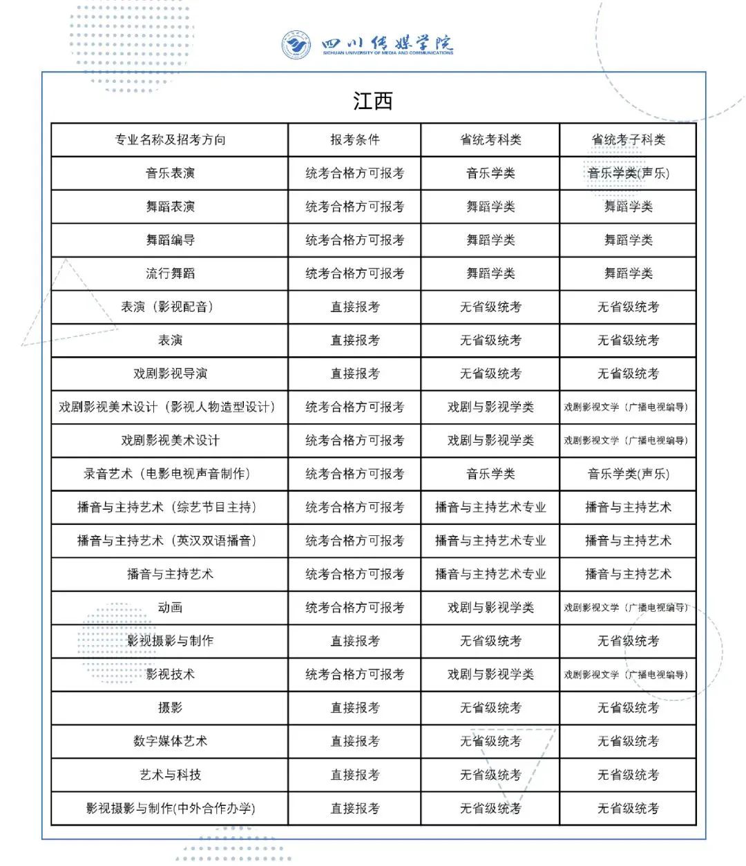 四川传媒学院2022年艺术类校考专业与省级统考科类对照关系表