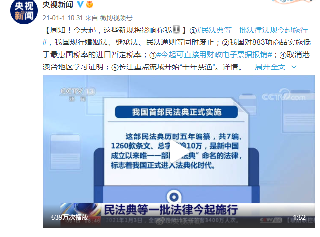 《中华人民共和国民法典》被称为“社会生活的百科全书”,是新中国第一部以法典命名的法律,在法律体系中居于基础性地位,也是市场经济的基本法。2020年5月28日,十三届全国人大三次会议表决通过了《中华人民共和国民法典》,自2021年1月1日起施行。婚姻法、继承法、民法通则、收养法、担保法、合同法、物权法、侵权责任法、民法总则同时废止。