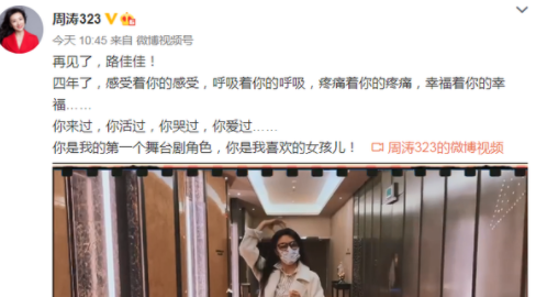前段时间,周涛主演《情书》“封箱”,在深圳大剧院上演最后一场戏,从2018的太原到2021的深圳,周涛为大家带来了 一个可爱又真诚的路佳佳,从首演至今4年50余场演出,