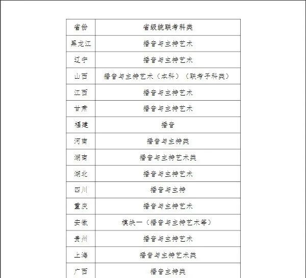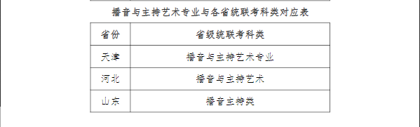 附件 天津师范大学艺术类招生播音与主持艺术专业与各省统联考科类对应表