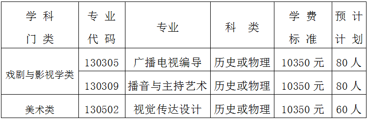 (二)对于没有统一投档原则的省(区、市),播音与主持艺术、广播电视编导专业在文化和专业都合格的考生中,按照高考文化成绩从高分到低分投档,对于投档考生,按照高考文化成绩由高到低录取;视觉传达设计专业在文化和专业都合格的考生中,按照专业成绩从高分到低分投档,对于投档考生,按照专业成绩由高到低录取。不设专业级差,无单科要求。