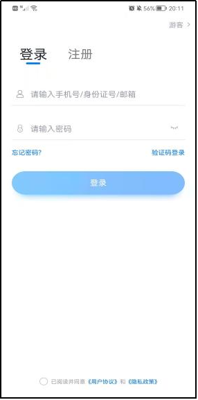 进入登录页,使用手机号/身份证号/邮箱和密码即可登录,身份证号登录必须是后续完成考生身份认证方可使用,身份证号必须为考生本人身份证号。