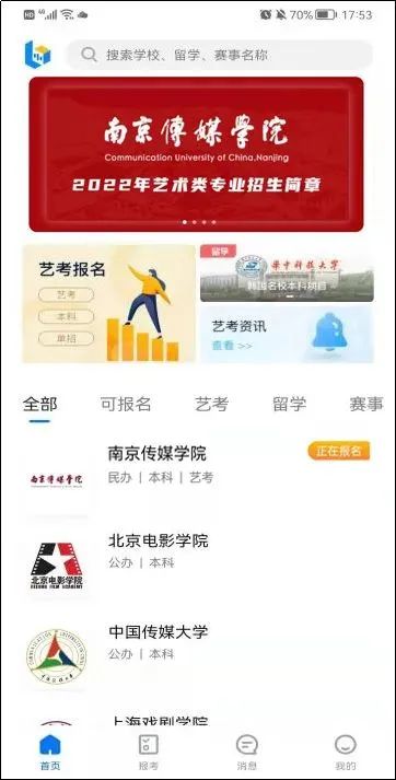 我校2022年艺术类专业校考报名通道现已开放,本次艺考报名及网络考核均在“小艺帮”APP进行。