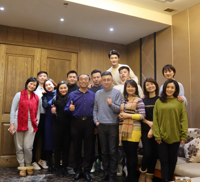 ,和台里的领导和同事合影留念。