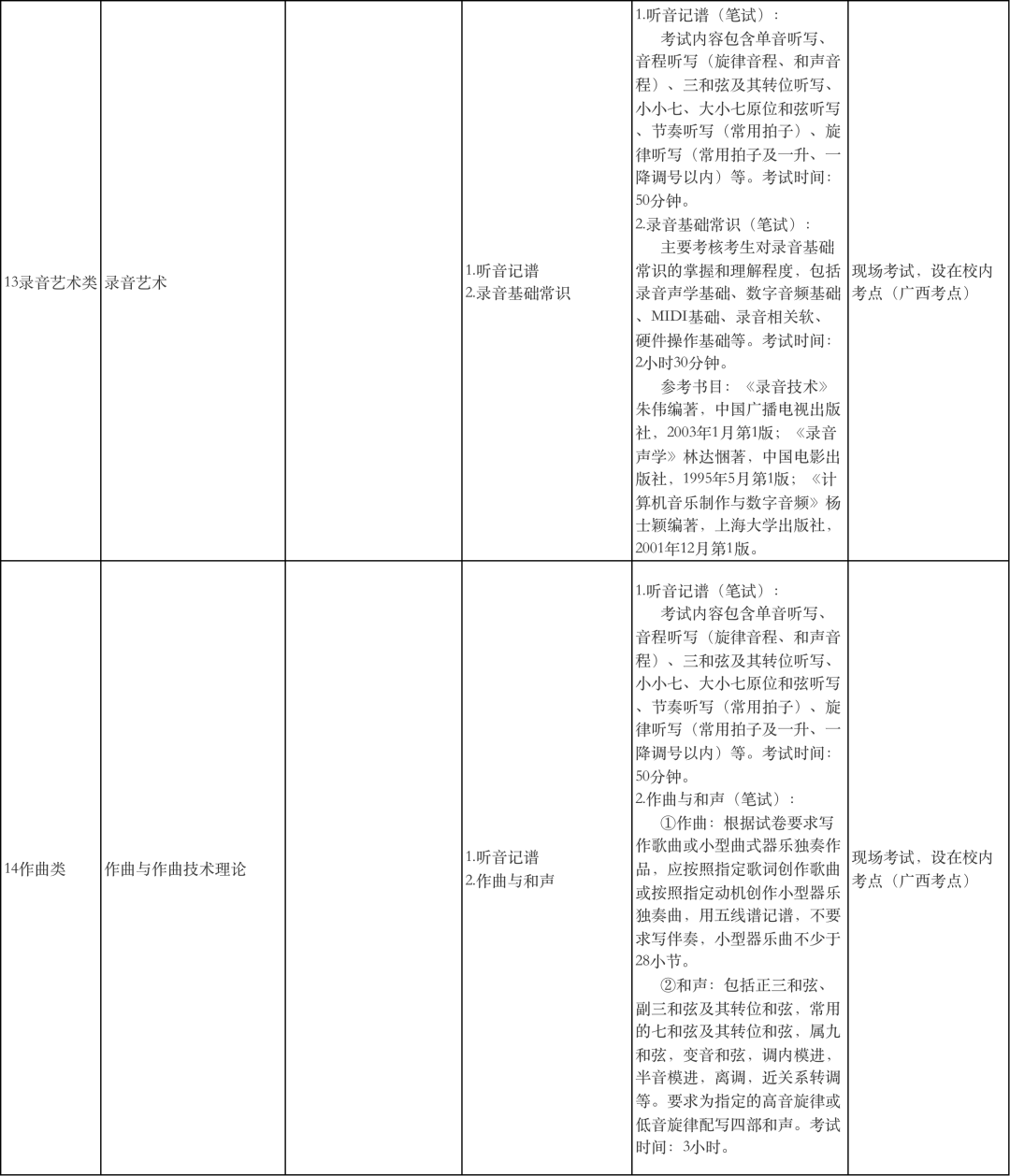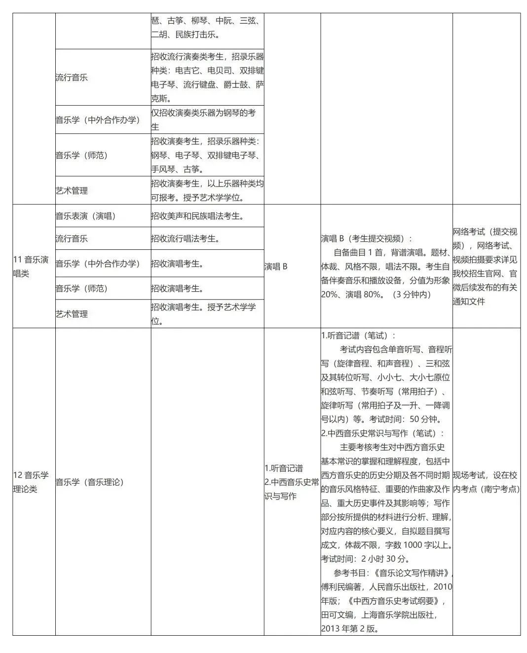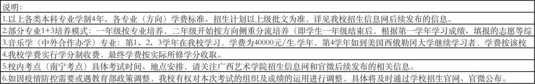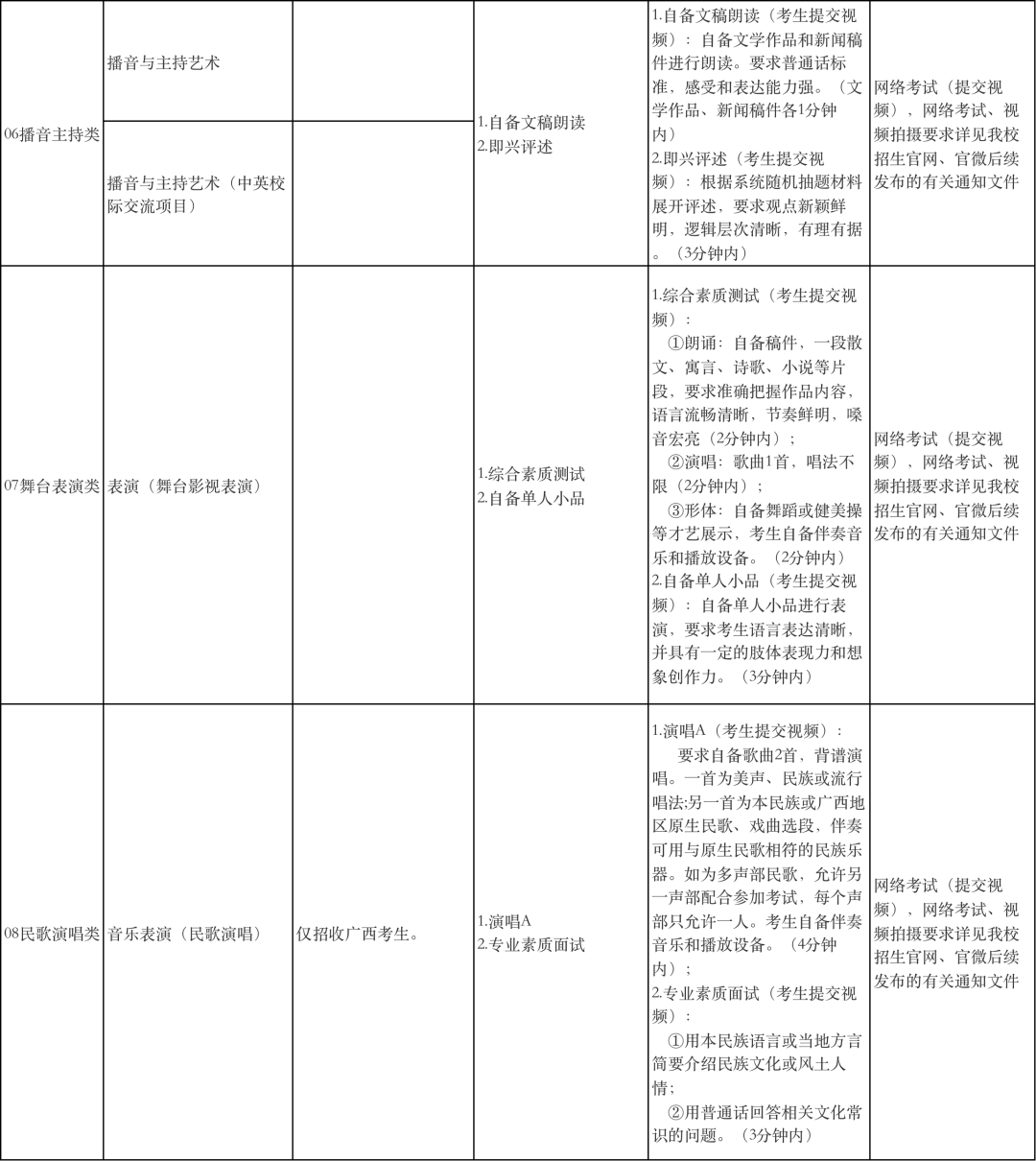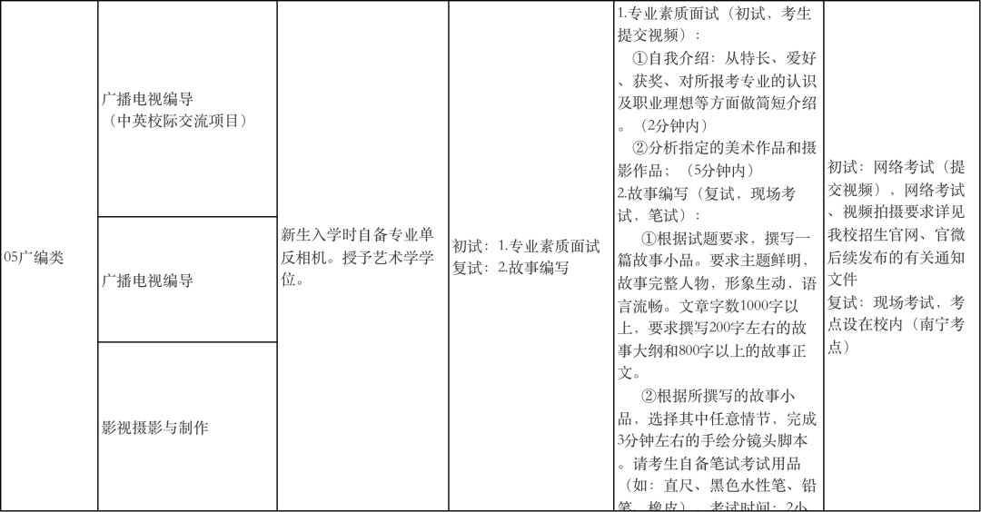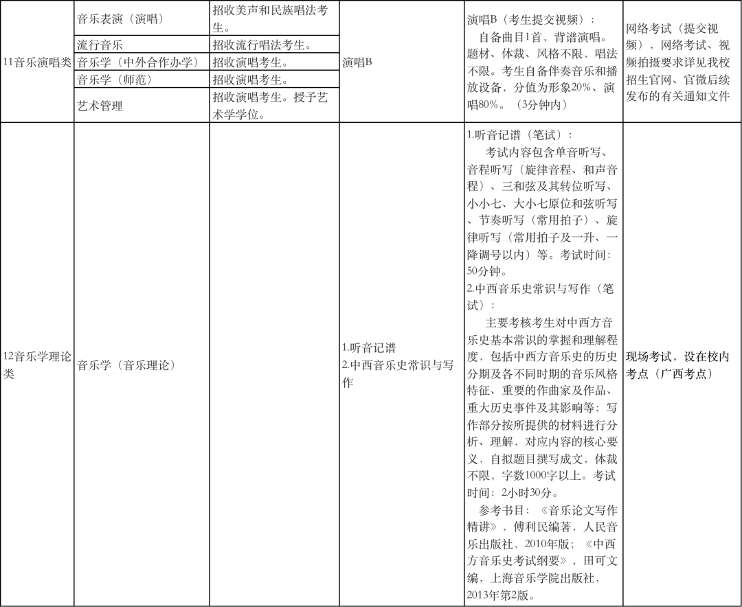 广西艺术学院2022年本科招生专业(方向)、考试内容及要求