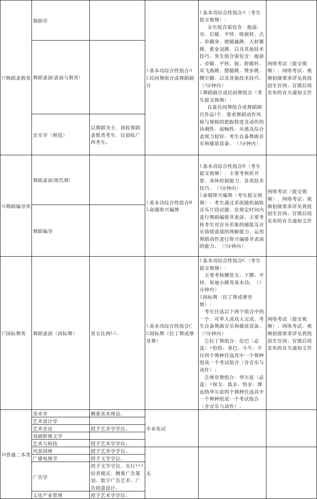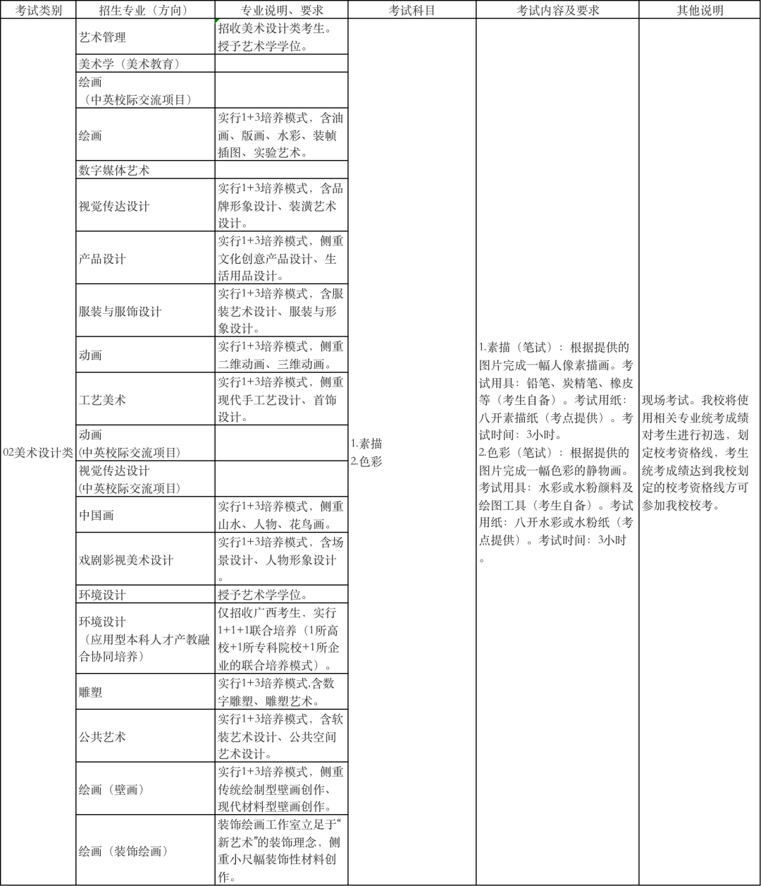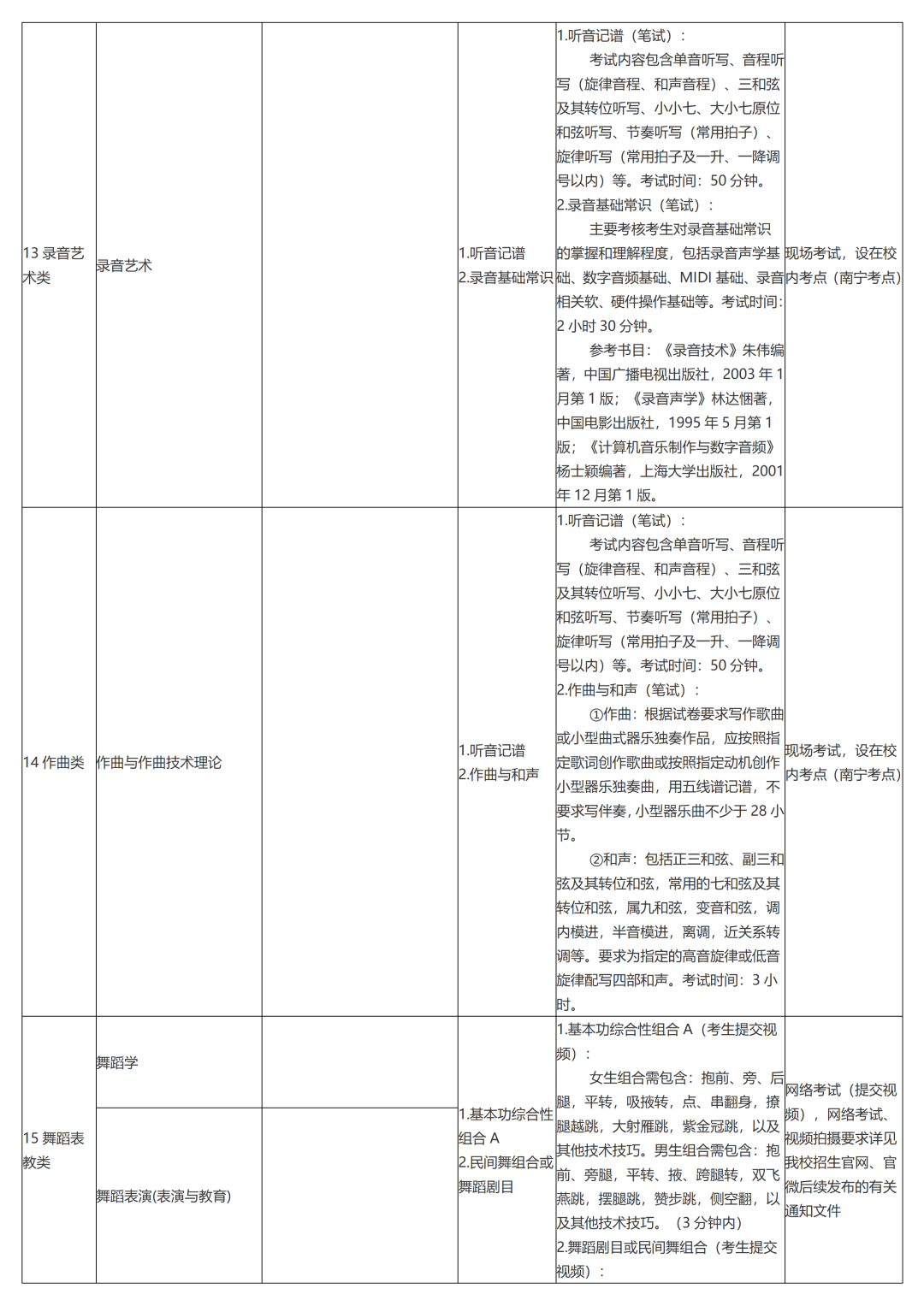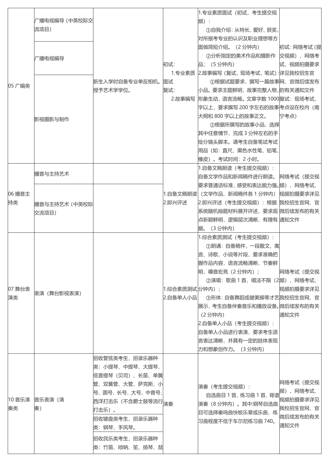 广西艺术学院2022年本科招生专业(方向)、考试内容及要求