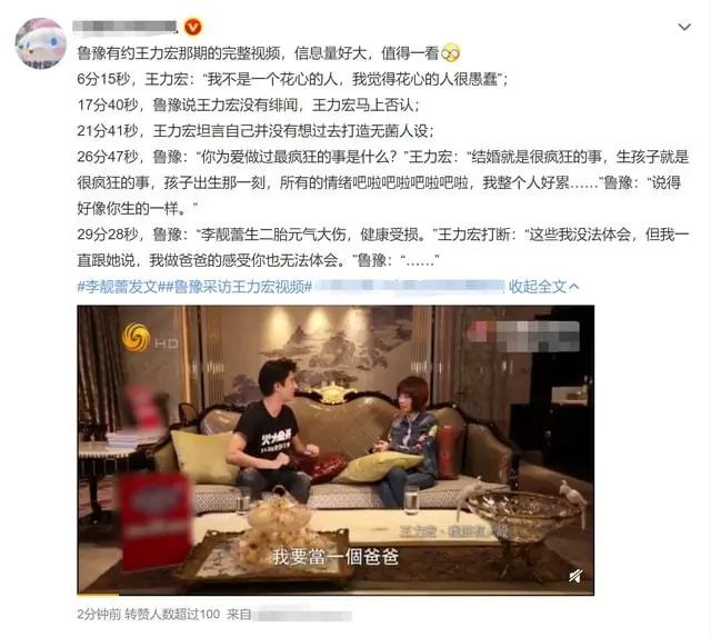 王力宏却打断她:“我做爸爸的感受你也无法体会”,让鲁豫一度无语。
