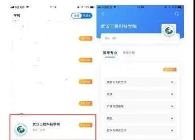 1.在【首页】搜索武汉工程科技学院,或直接在下方列表找到武汉工程科技学院,点击进入学校详情页,选择报考专业进入;