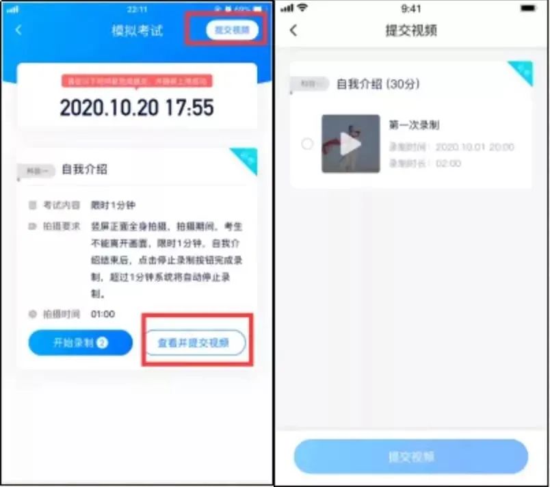 录制完成后需要在规定时间内拍照并提交上传。