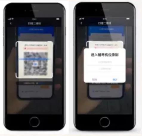 我校采用双机位同时在线实时录制考试。进入“考前练习”“模拟考试”“正式考试”的相关页面都会有辅机位的二维码入口,使用辅助机位“小艺帮助手”APP,扫描即可进入。