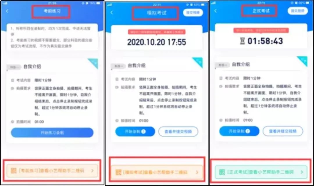 正式考试时,主机的所有科目都录制完成并提交完毕后,辅机的视频才可提交。考试时间结束,辅机依旧可以提交视频。