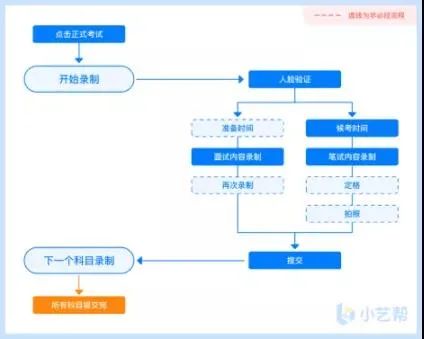 点击模拟考试,开始人脸识别,人脸识别通过后根据提示音开始考试,录制完毕后可查看录制视频并提交或返回再次录制。笔试类考试录制完毕后不能回看视频及再次录制。
