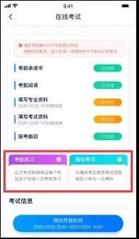 在正式考试前请务必进行考前练习及模拟考试,以提前熟悉正式考试流程。