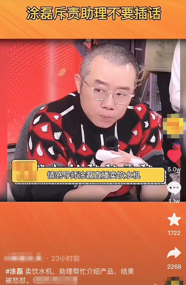 当天直播时的涂磊正在推销一款饮水机,他慢条斯理地对着镜头介绍,强调着这款饮水机的优点,让大家抓紧时间购买,一旁的助理为了提高观众的积极性,应和了一句“对啊,这款饮水机非常方便”。