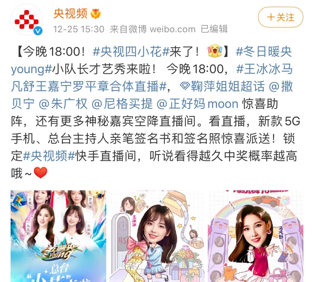 25日,“央视四小花”王冰冰、马凡舒、王嘉宁、罗平章合体直播,大家看了吗?