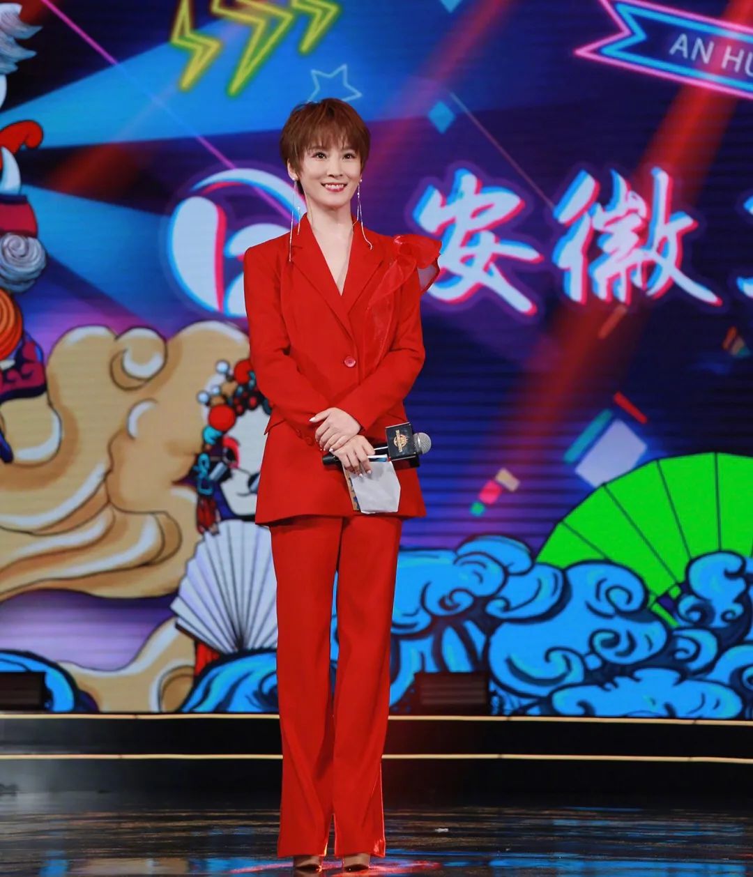 李莎旻子首次以簪花造型主持音乐盛典,主持中途突下大雨