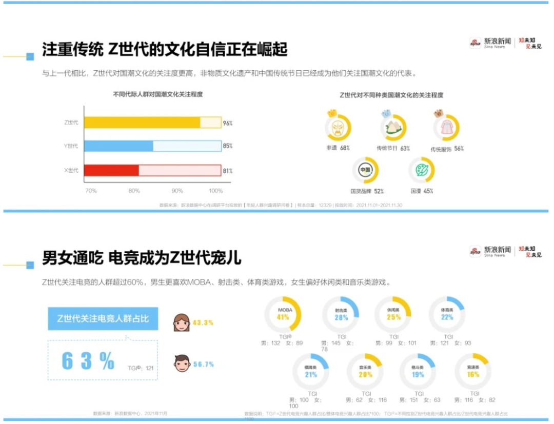 新浪新闻上周发布的《走进自信的Z世代 2021新青年洞察报告》显示,越来越多的兴趣圈层出现在Z世代的世界中,电竞、国潮、萌宠、潮玩等小众圈层都有专属的年轻群体。