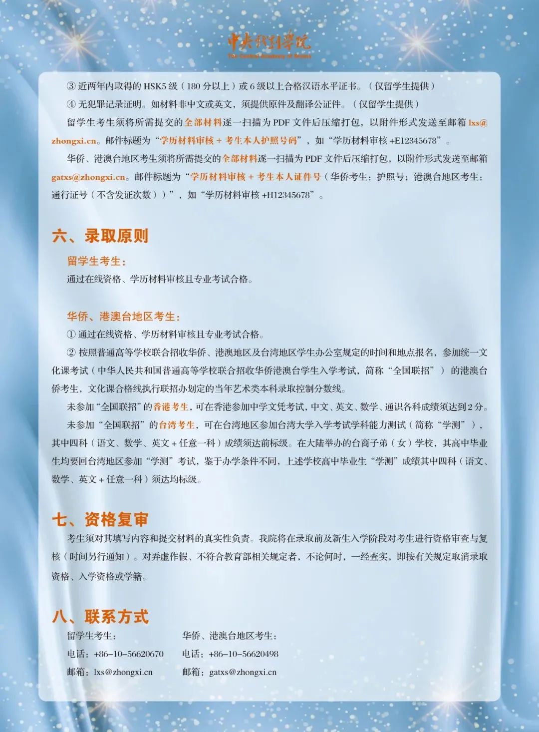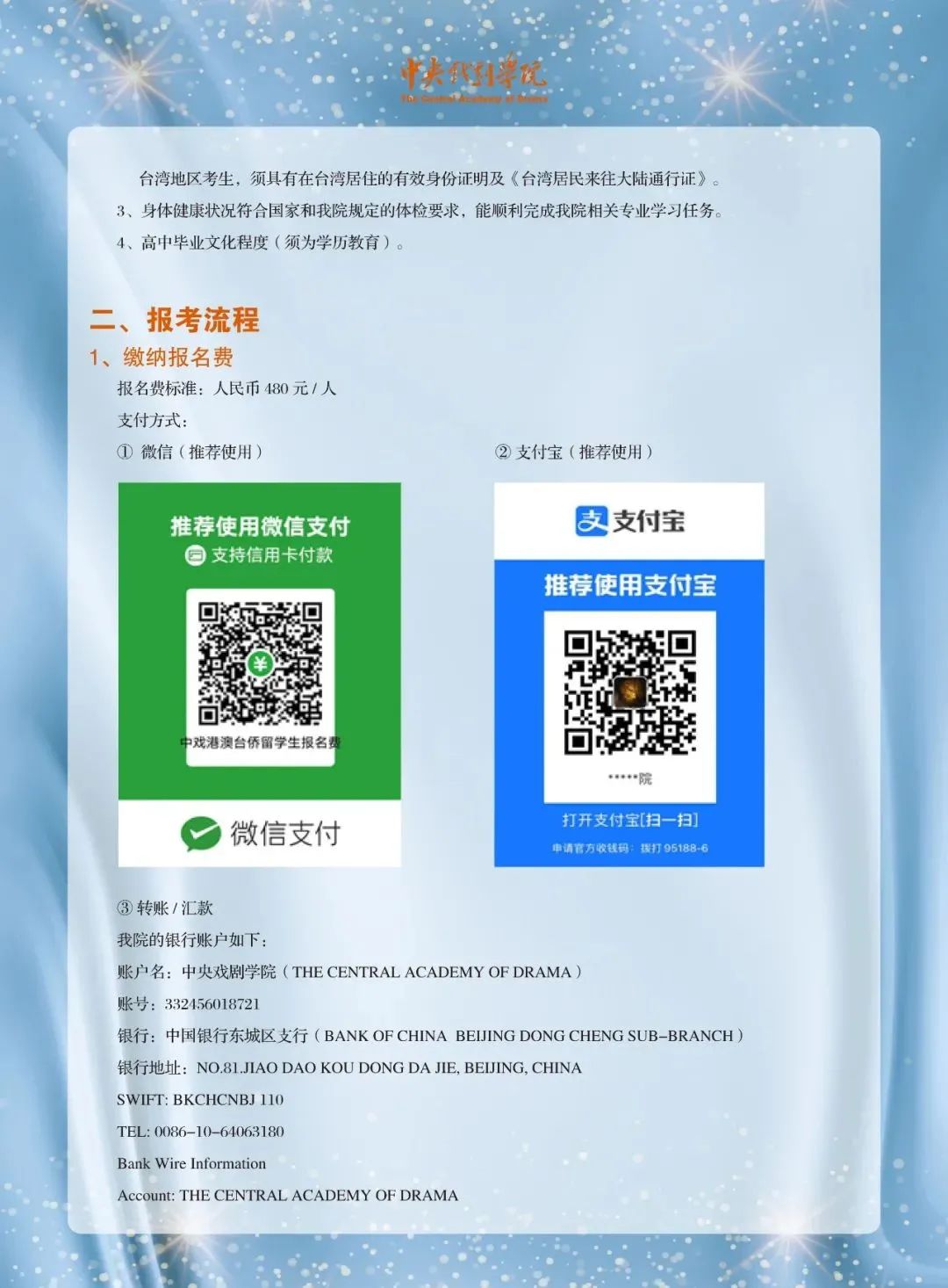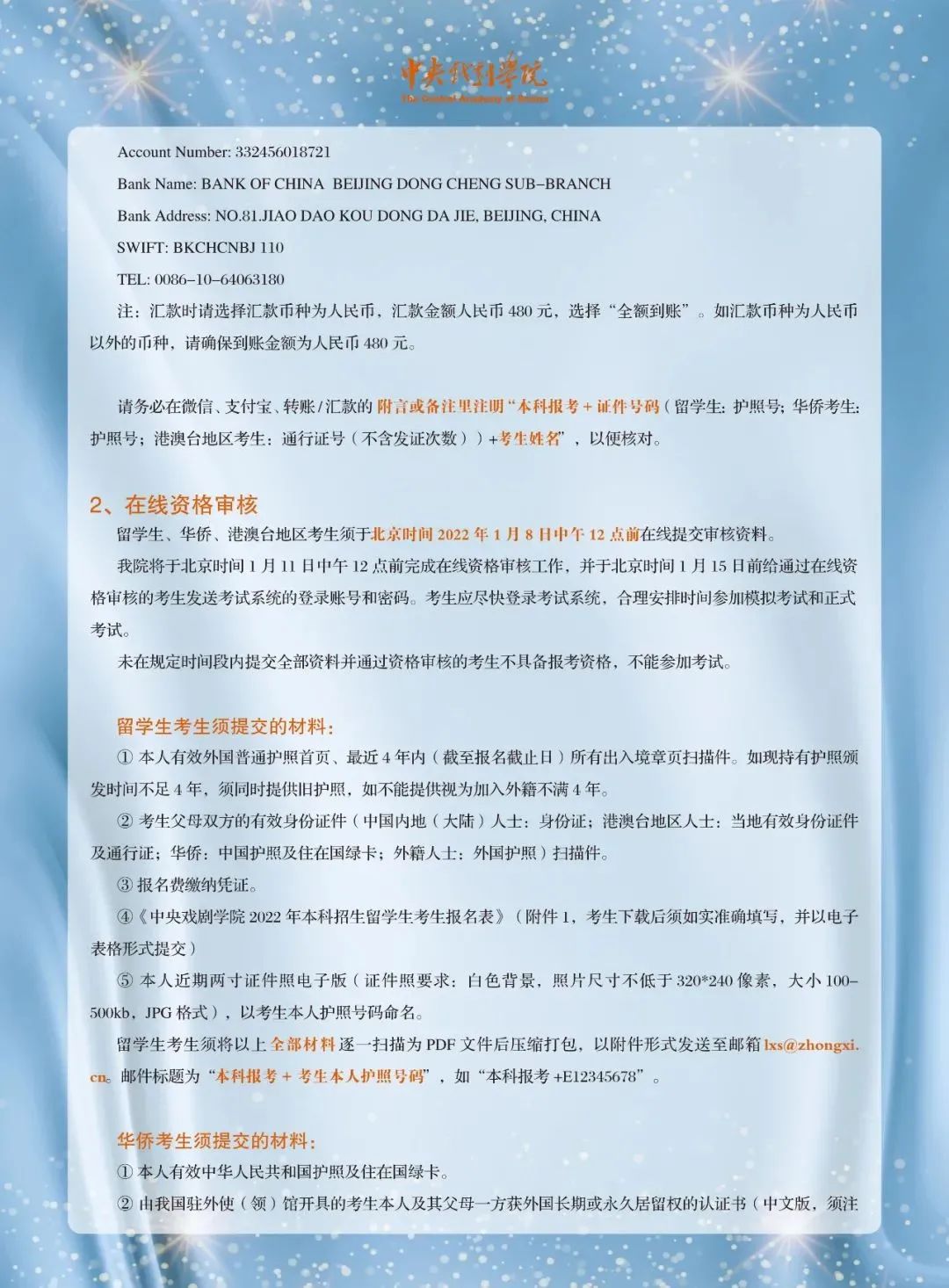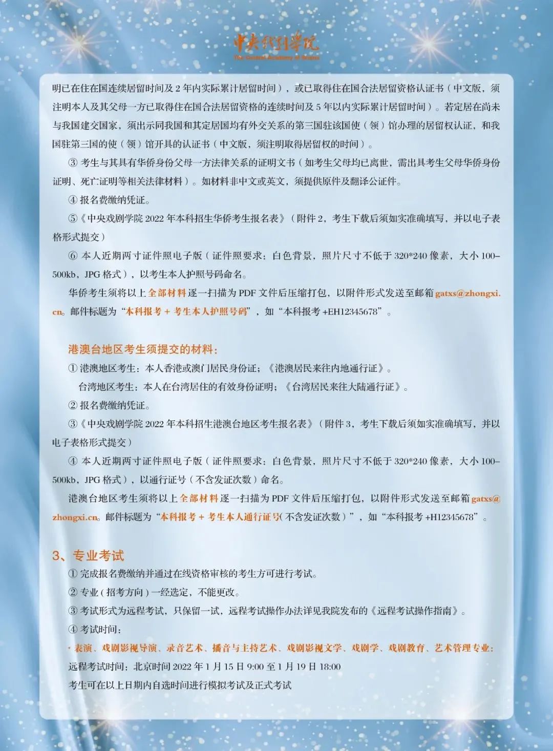 中央戏剧学院2022年本科招生留学生、华侨、港澳台地区考生报考须知