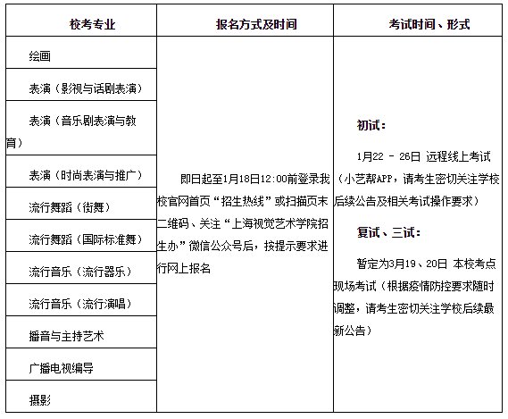 参加我校校考的考生,须在符合各省(市)相关招考规定的基础上,依照我校规定进行报名和考试。我校相关专业在各省(市)的艺术类专业省级统考要求,请参考学校官网公布的《上海视觉艺术学院2022年各省级统考子科类对照表》(点击查阅)。如后续因疫情等原因,考生所在省(市)统考科类有所调整,请以各省(市)考试院最终要求为准。
