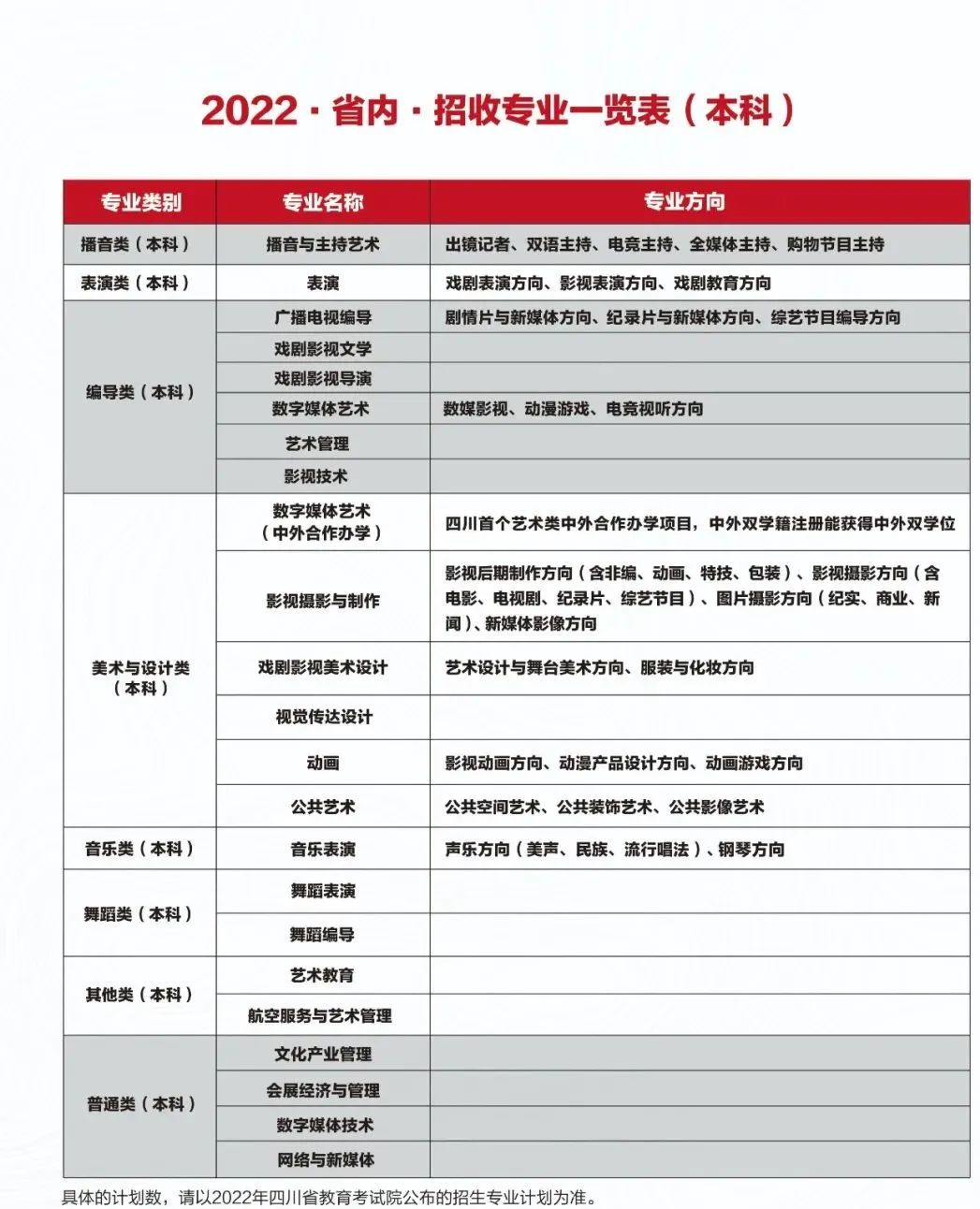(1)根据公布的《四川电影电视学院2022年艺术类本科专业与省级统考子科类对照关系表》选择考生所在省份认定校考或统考合格基础上校考的专业;