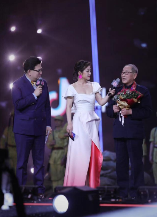 李莎旻子首次以簪花造型主持音乐盛典,主持中途突下大雨