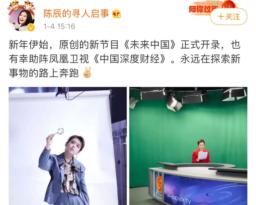 不过陈辰却于1月4号发布了新的动态,透露已经正式开机制作一档新节目,将会在2月底开播。