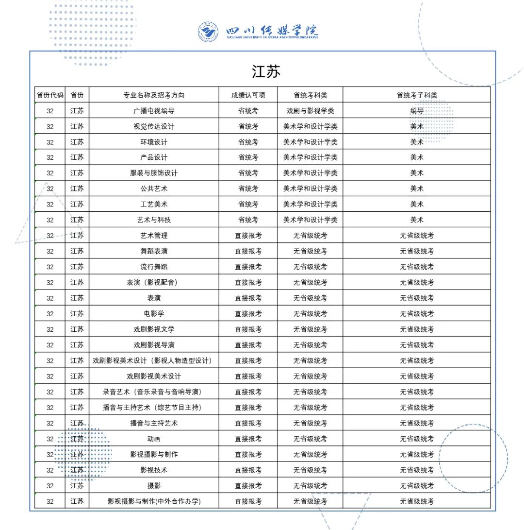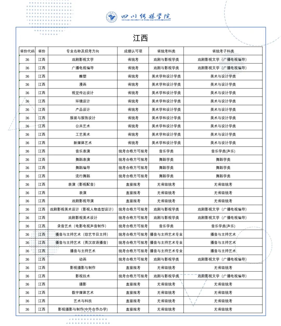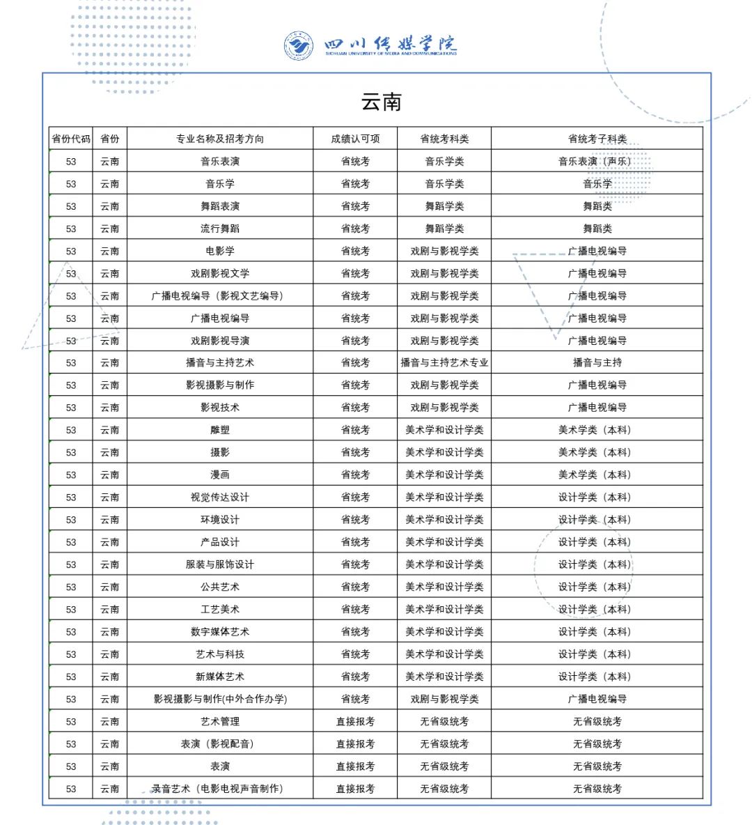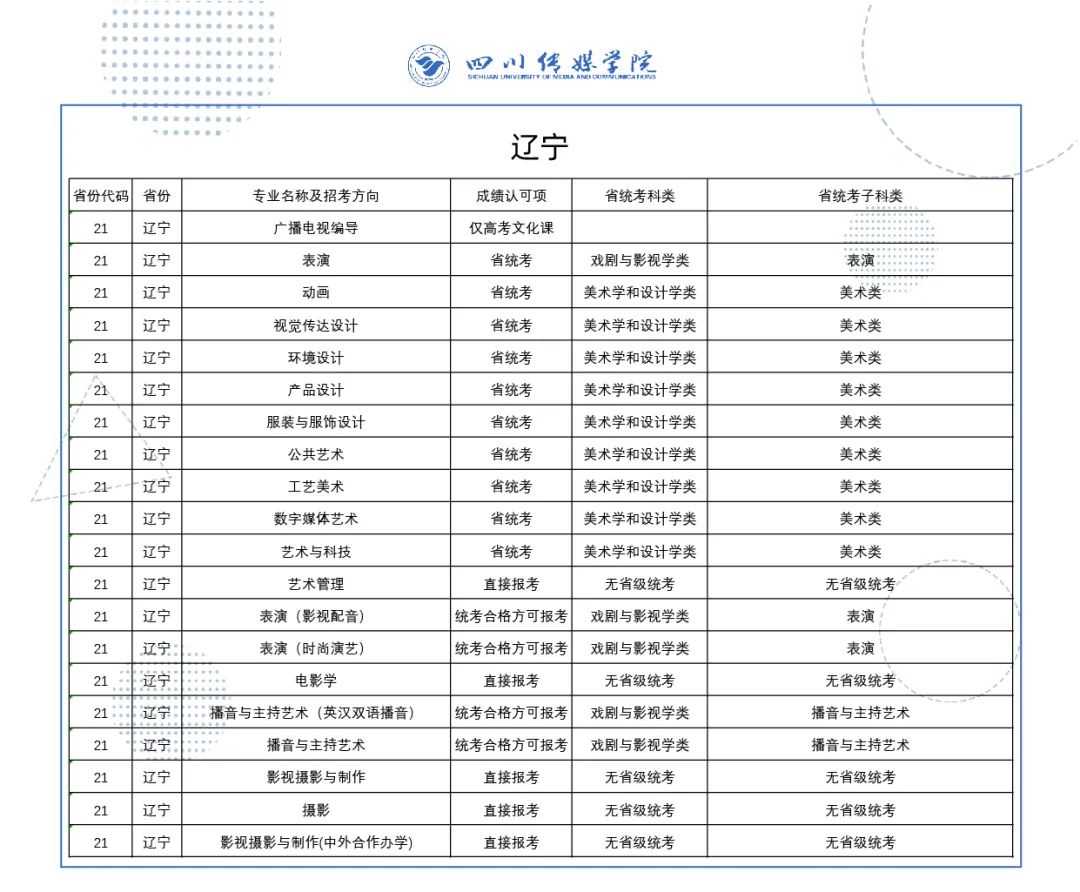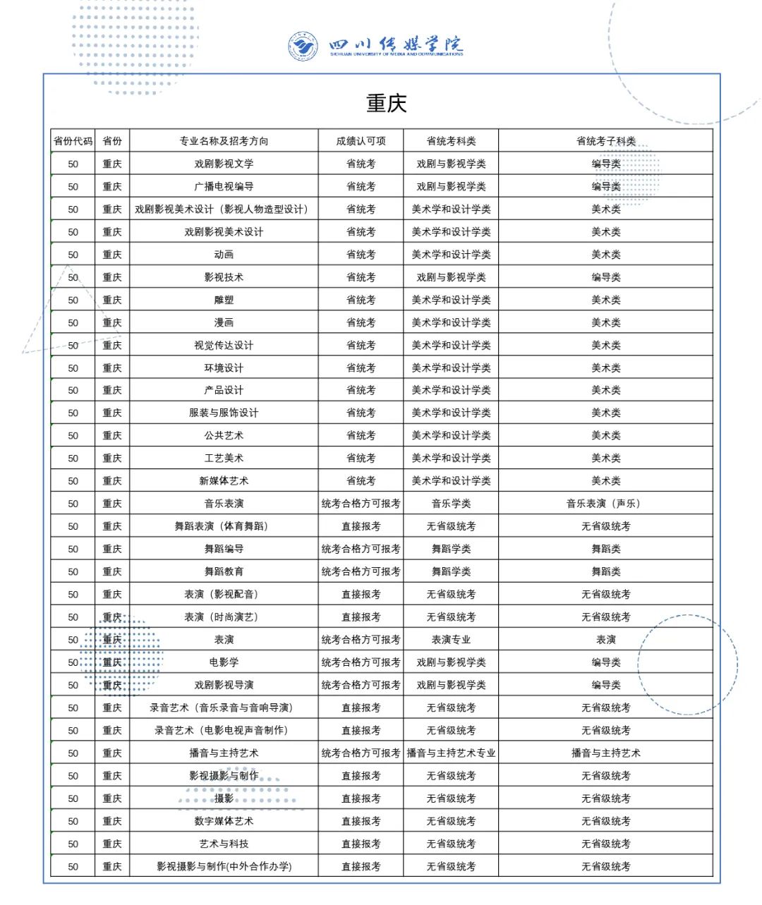 2022年四川传媒学院艺术类本科各省拟招专业及成绩认定一览表