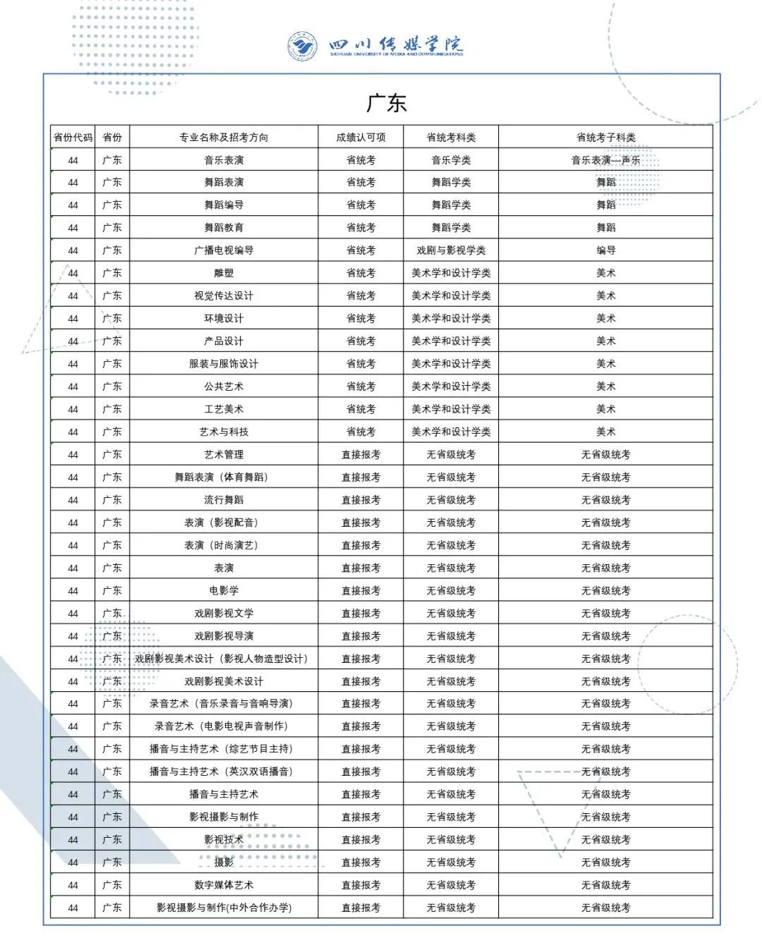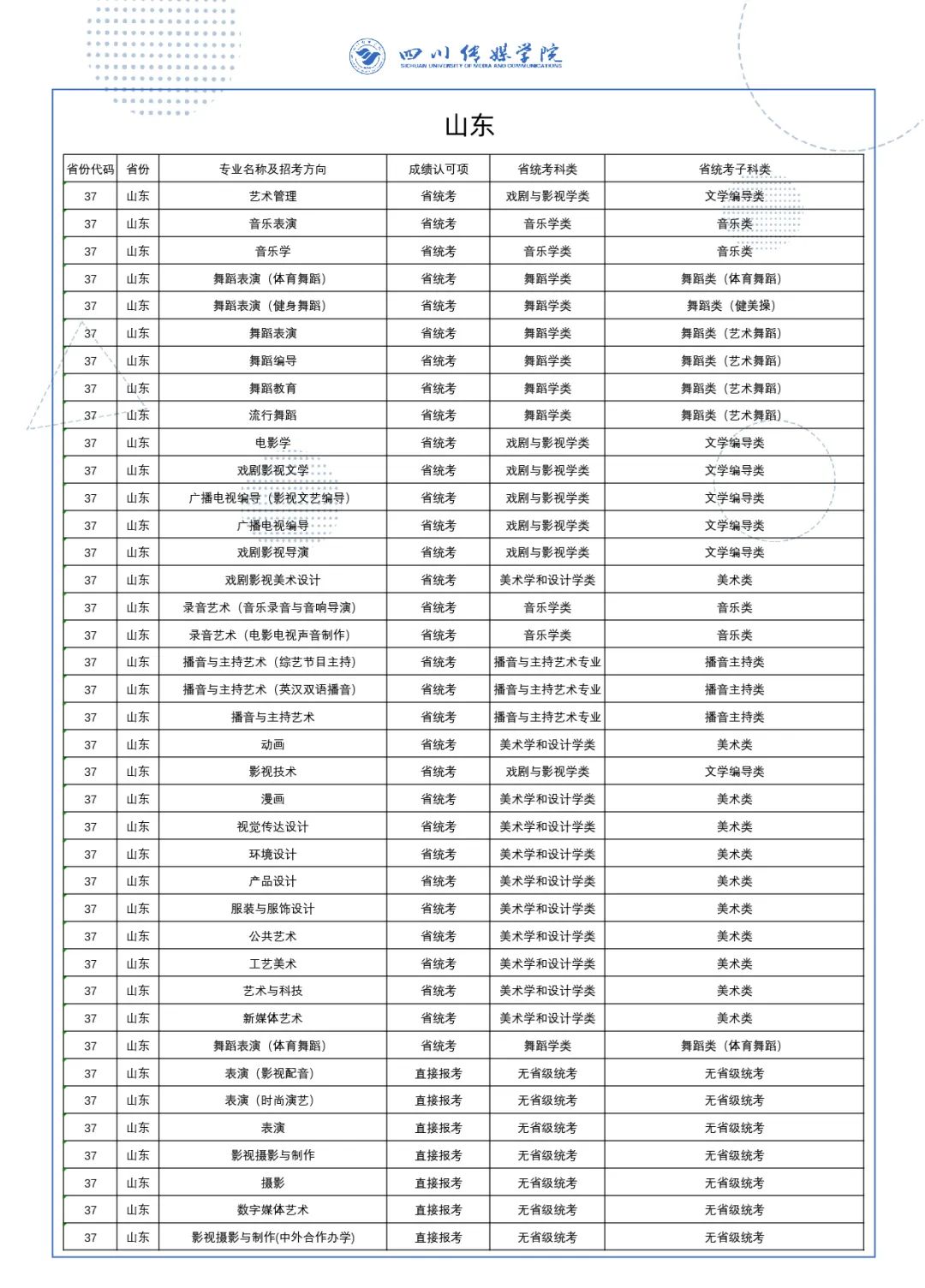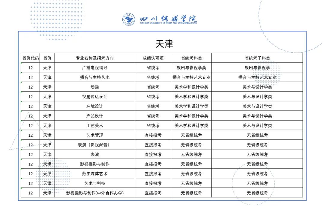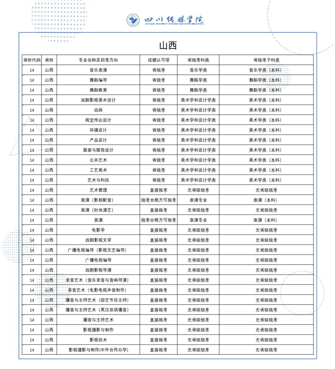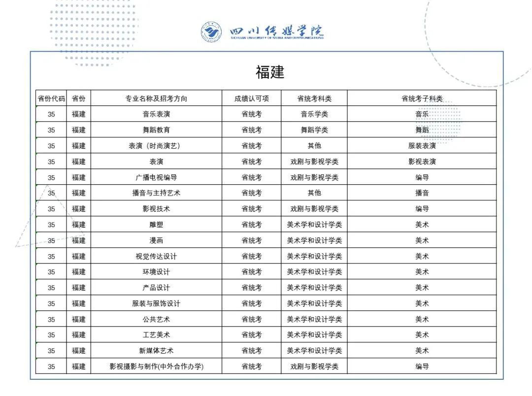 2022年四川传媒学院艺术类本科各省拟招专业及成绩认定一览表