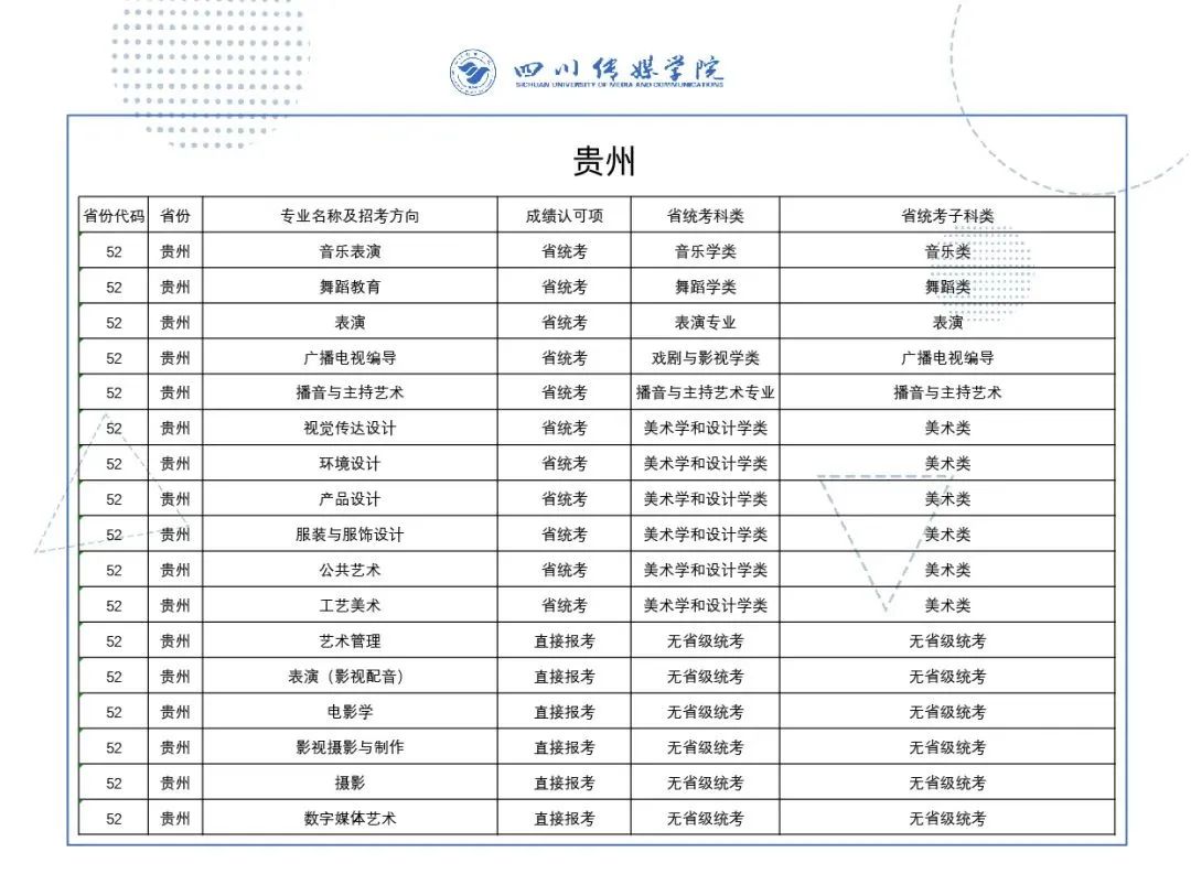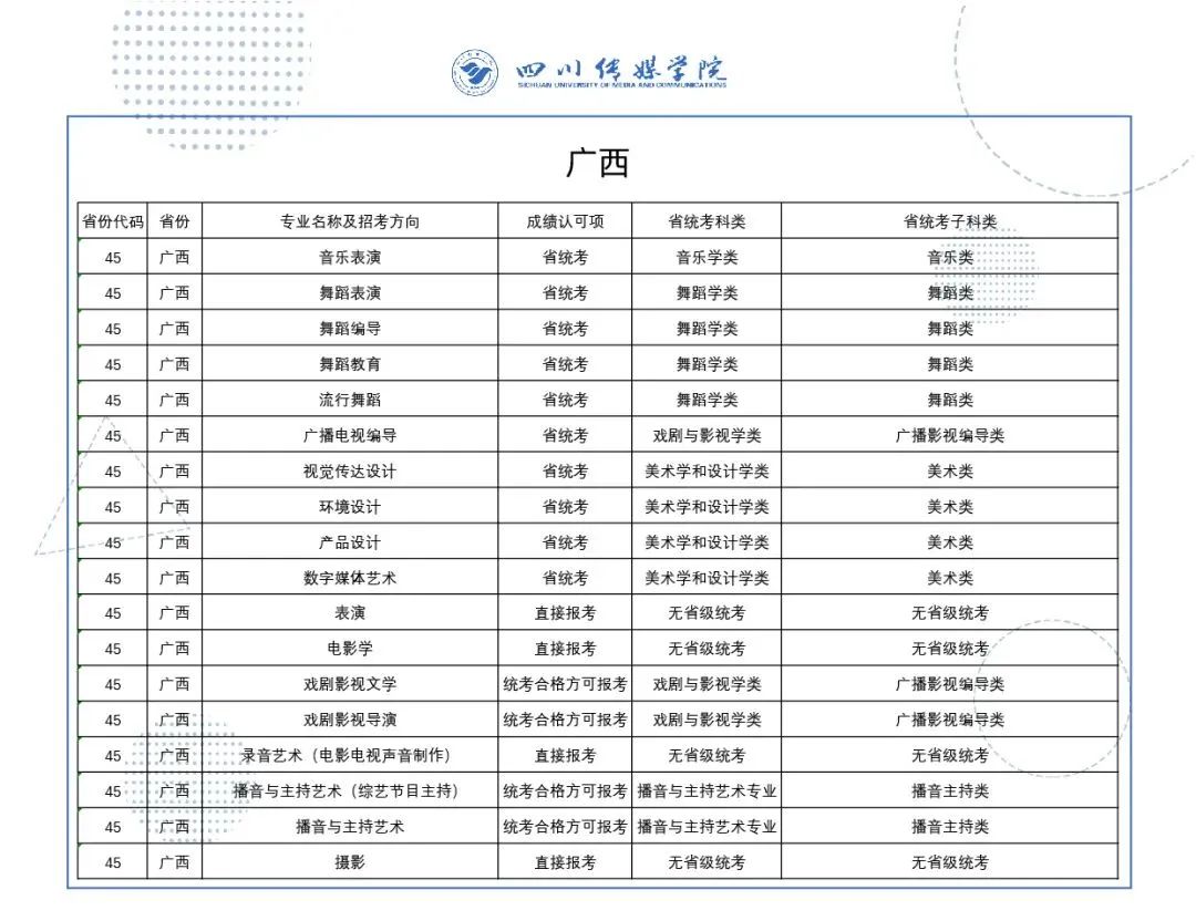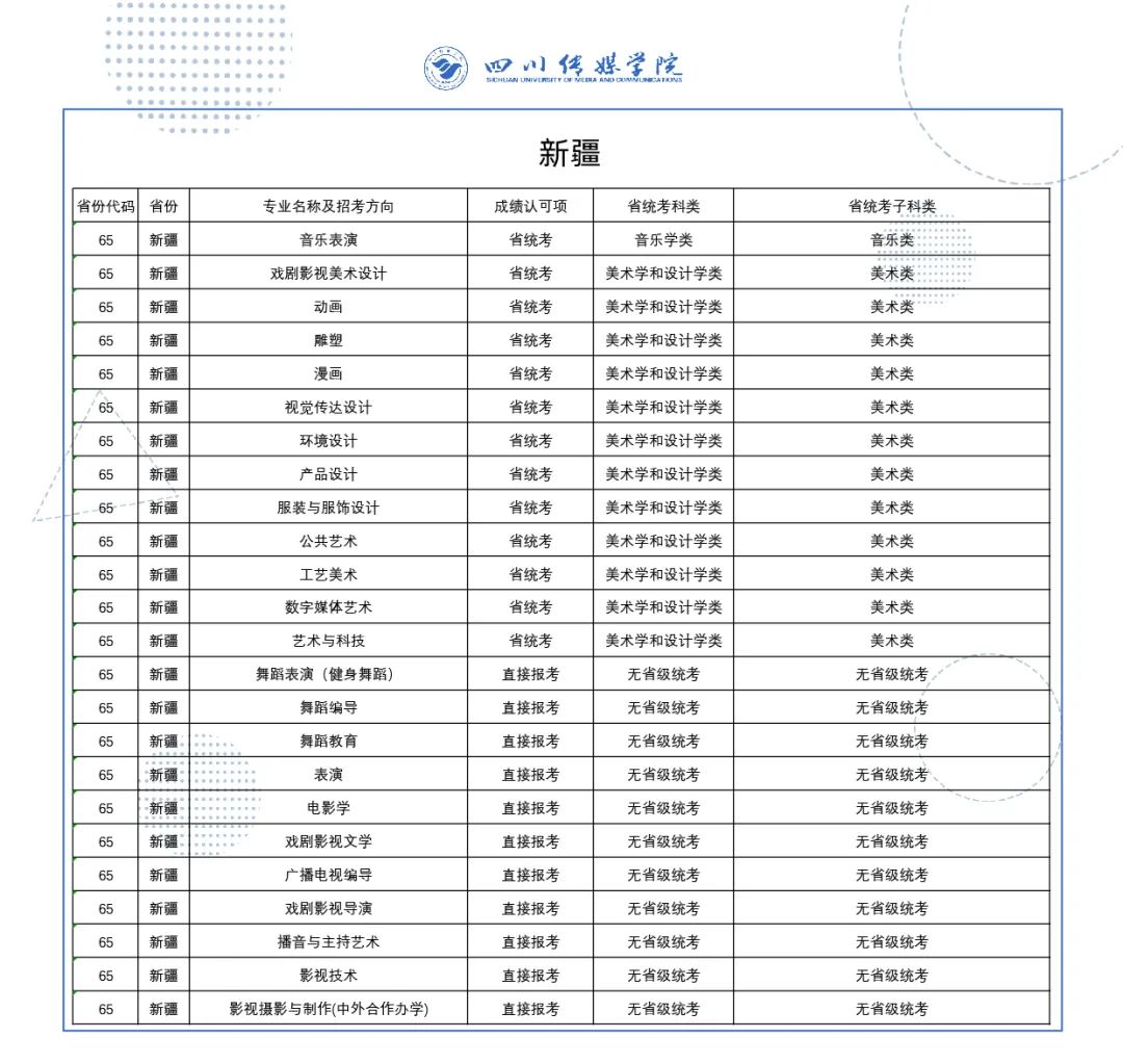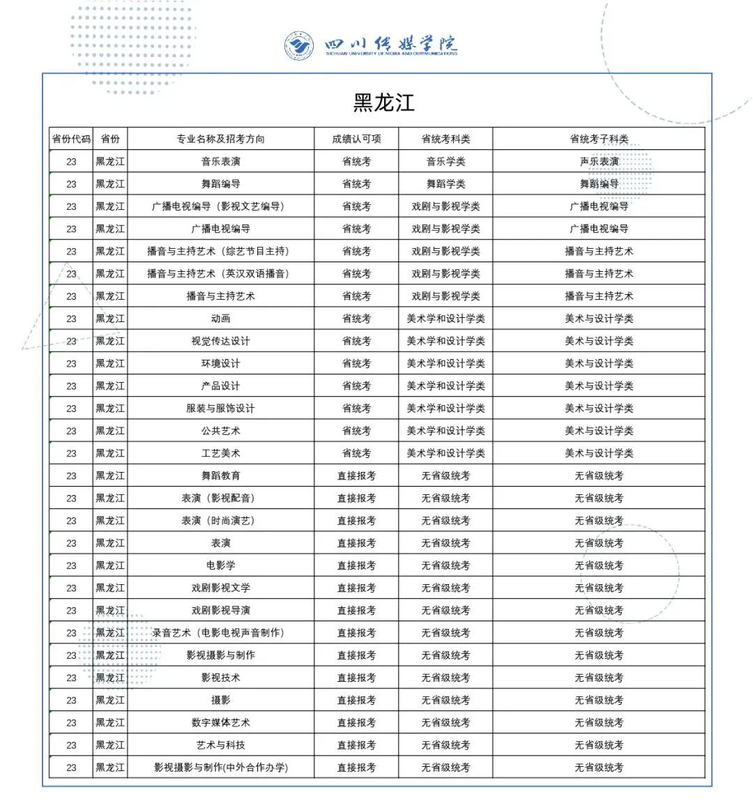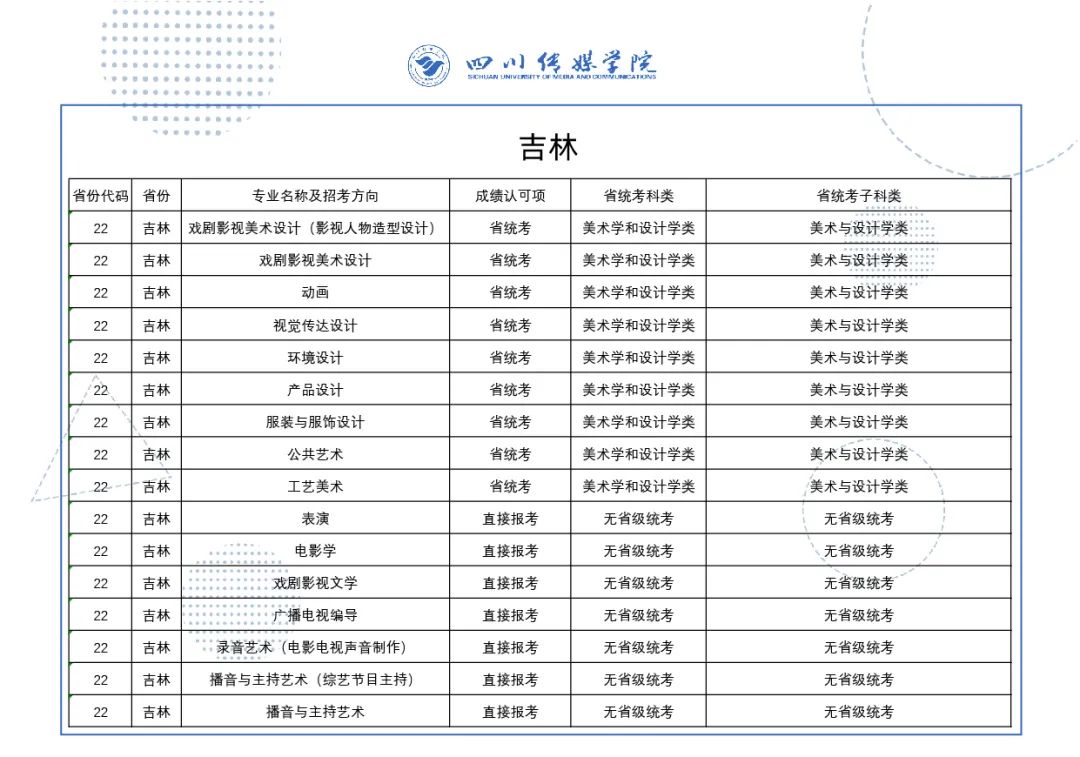 2022年四川传媒学院艺术类本科各省拟招专业及成绩认定一览表