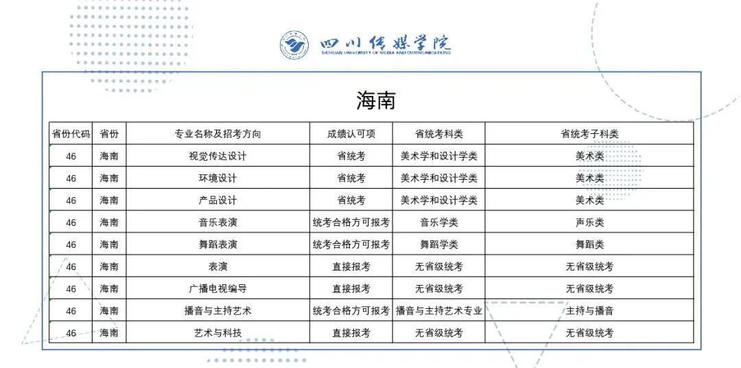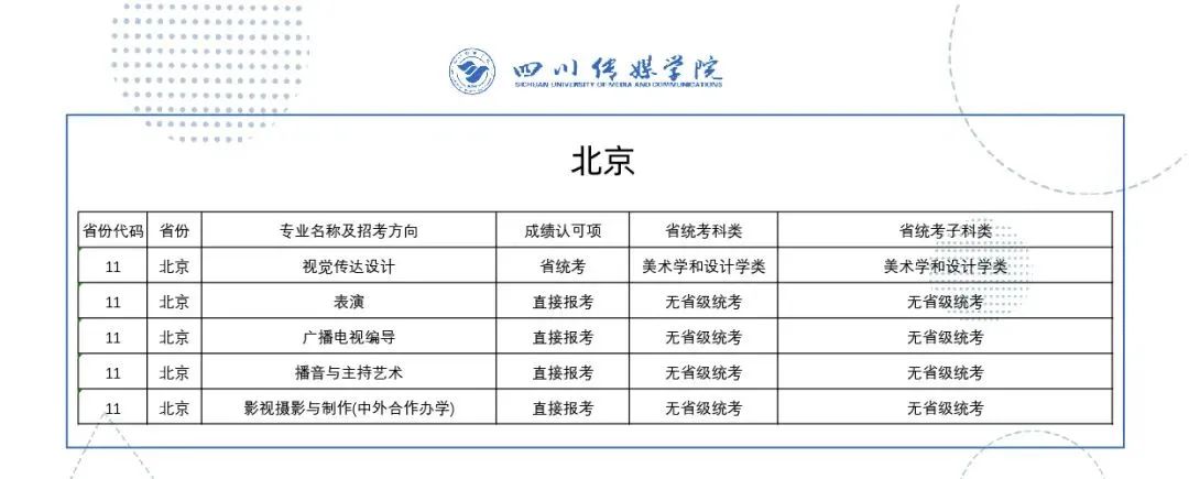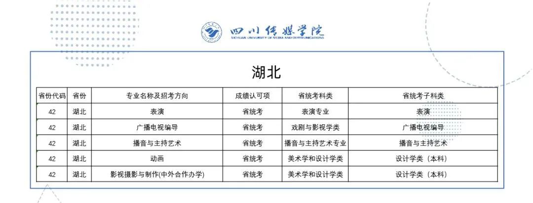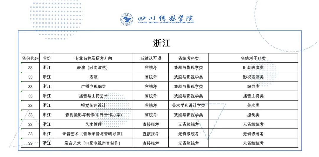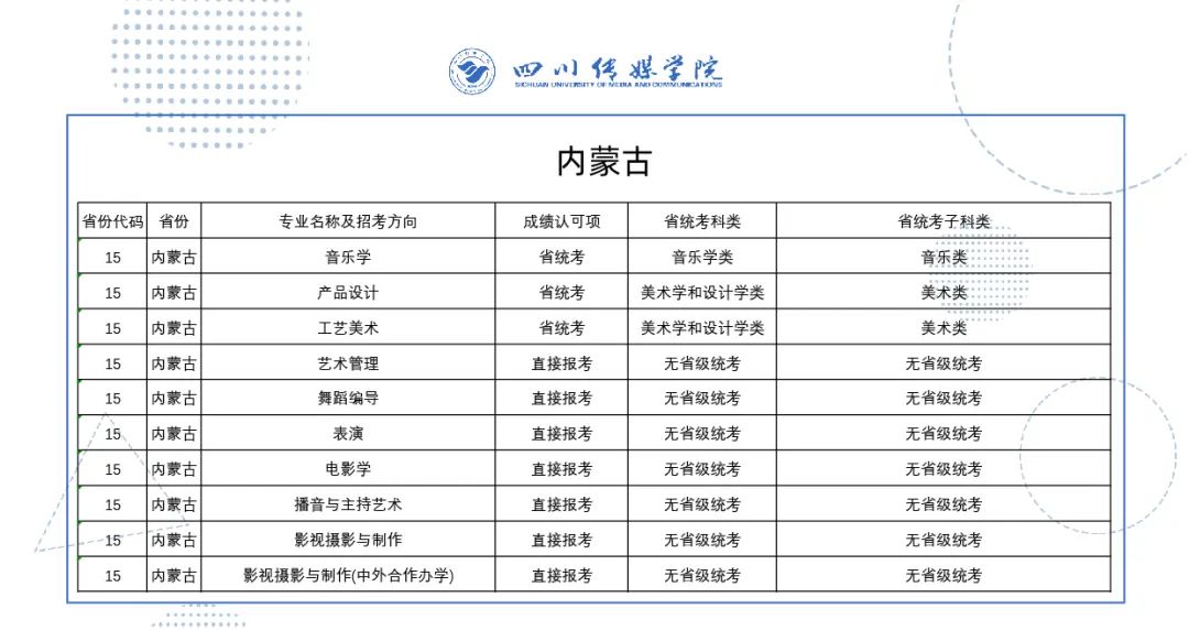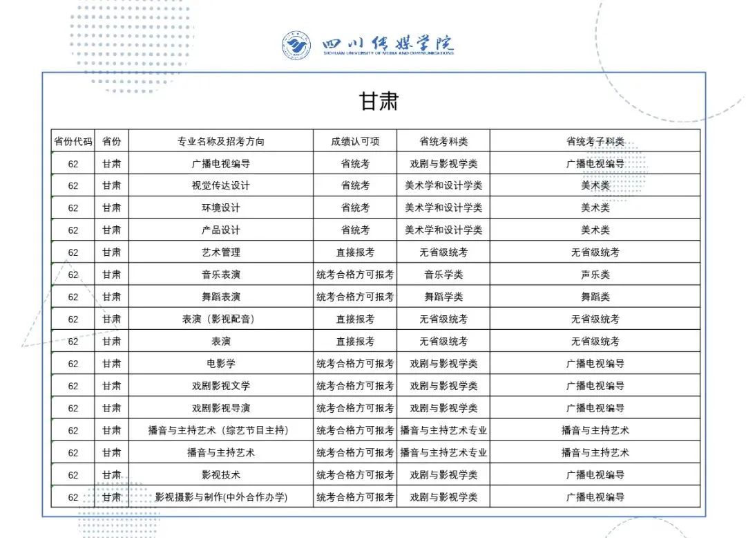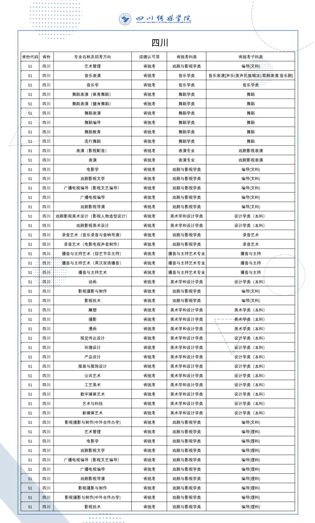2022年四川传媒学院艺术类本科各省拟招专业及成绩认定一览表