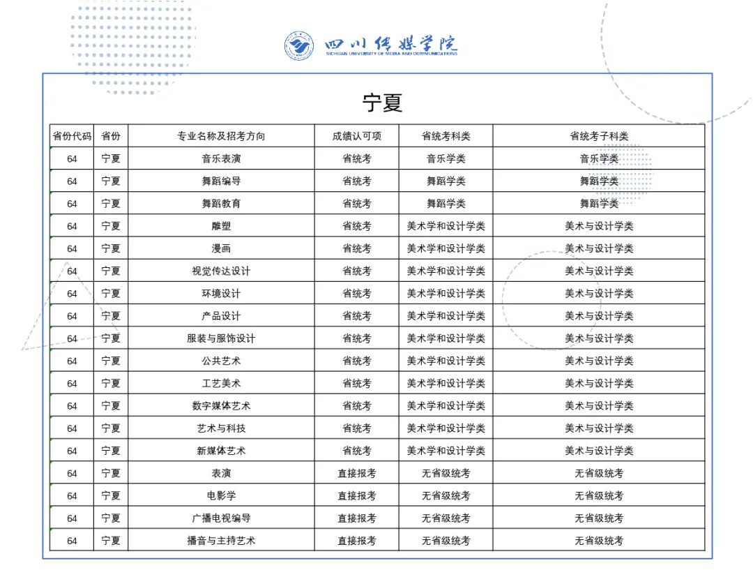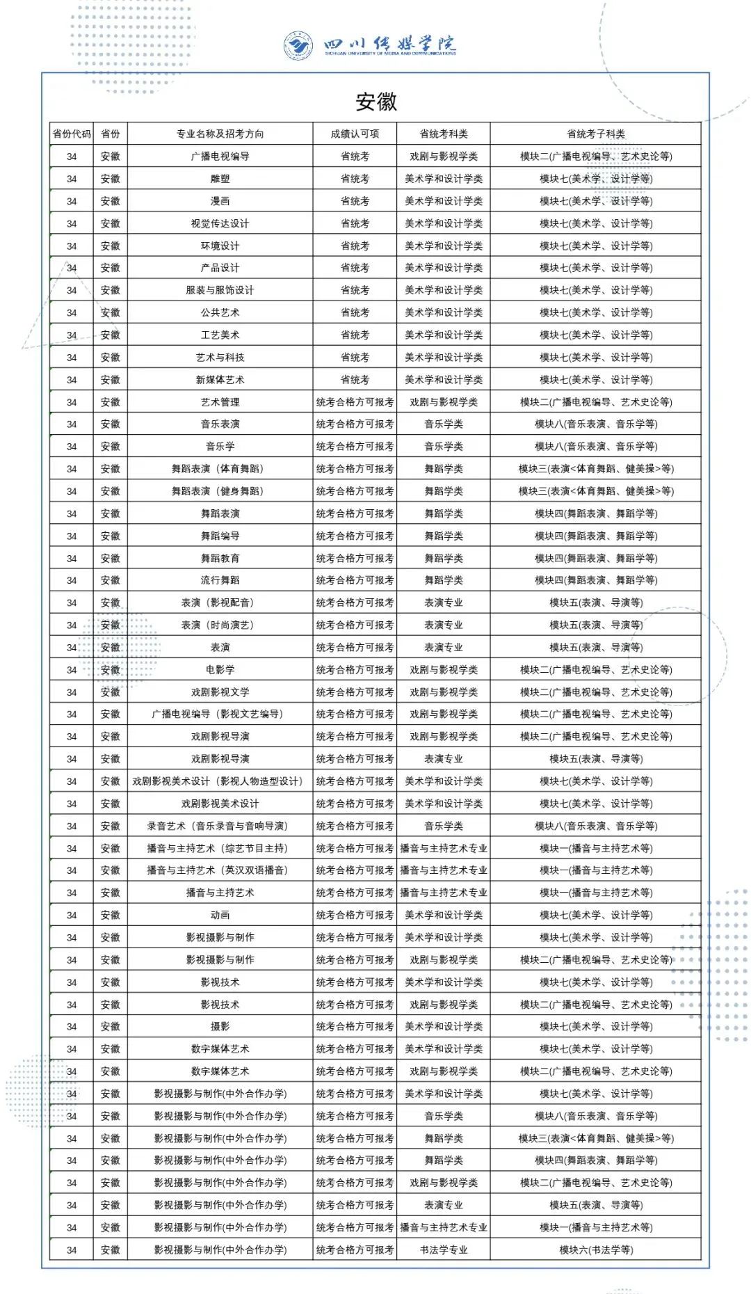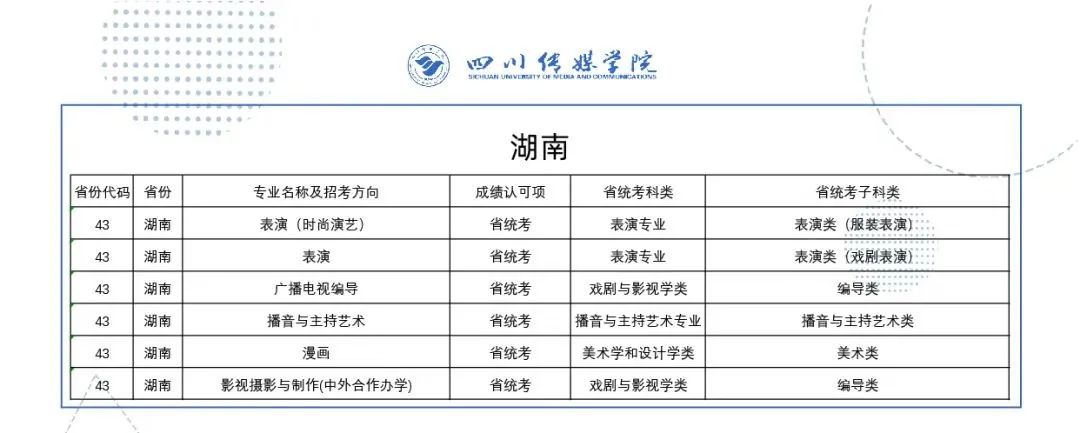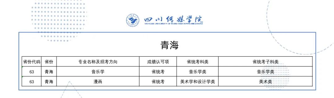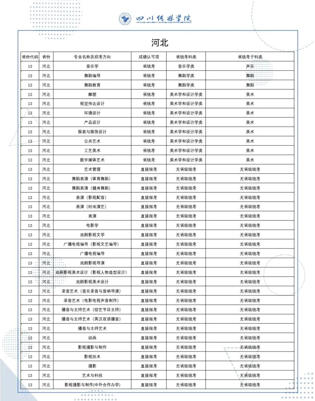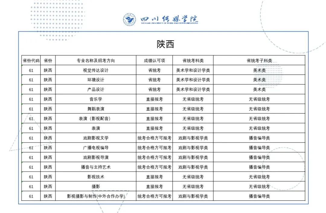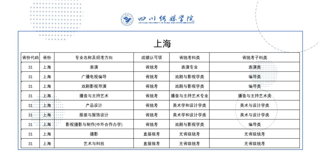2022年四川传媒学院艺术类本科各省拟招专业及成绩认定一览表