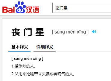 “丧门星”在《现代汉语词典》(第7版)里有独立的条目,其中“丧”读sāng。这个字音查阅百度汉语可见标注的是sàng。当然,百度虽然偶有与《现代汉语词典》不相符的情况,多数字音一般都是与字典一样的,可以作为参考。如果某个字音不确定,通常还是要以“字典”为准。