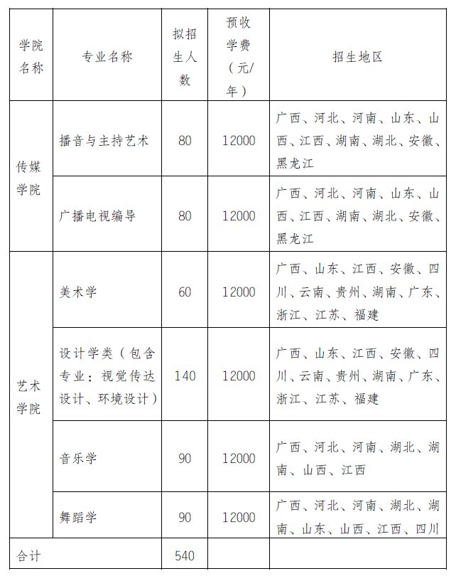 广西民族大学2022年艺术类招生简章