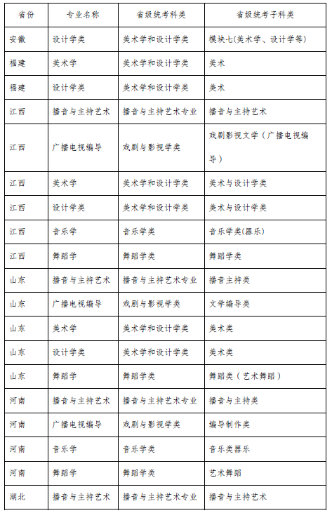 五、艺术类本科专业与省级统考子科类对照表