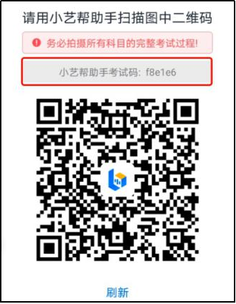 在主机(小艺帮app)上点击“模拟考试”或“正式考试”,进入考试页面,页面下方会出现小艺帮助手二维码查看入口,点击打开二维码,使用辅机(小艺帮助手app)扫描二维码进入。