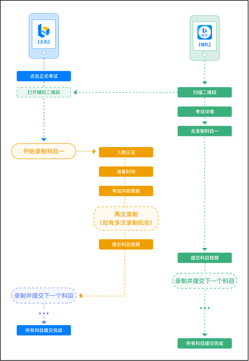 (2) 双机位考试时,提交主机位科目视频后,辅机位对应科目的视频才可以提交;