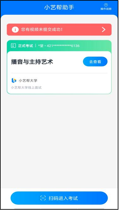 (4) 考试视频全部提交后,请考生务必确认上传状态,不要退出小艺帮助手APP。如果视频上传失败,我们会提醒您【您有视频未提交成功!】,请点击进去重新提交,您可以切换 Wi-Fi 和 4G 网络进行尝试。