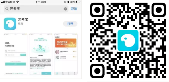 使用手机扫一扫功能扫描下方二维码,在手机浏览器中打开链接,下载并完成安装。苹果iOS系统用户也可以进入AppStore,搜索“艺考宝”下载并安装。