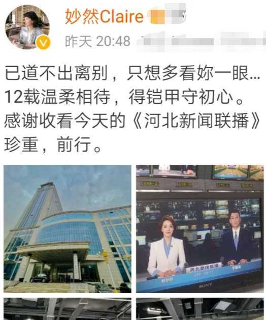 2021年,刘妙然从工作了12年的老东家河北卫视辞职,加入中央广播电视总台。
