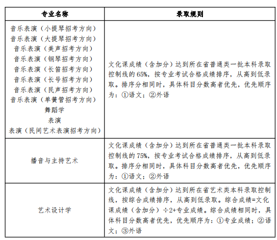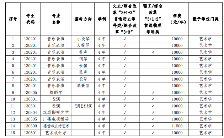 一、艺术类招生计划说明