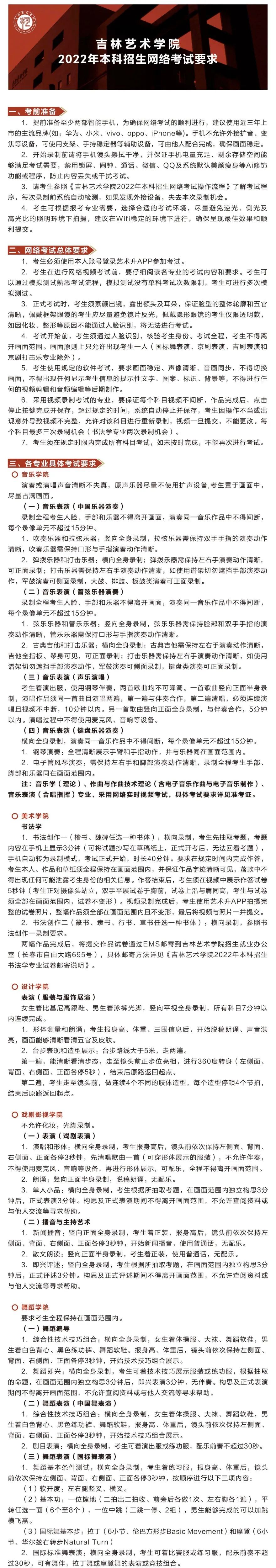 吉林艺术学院2022年本科招生网络考试要求