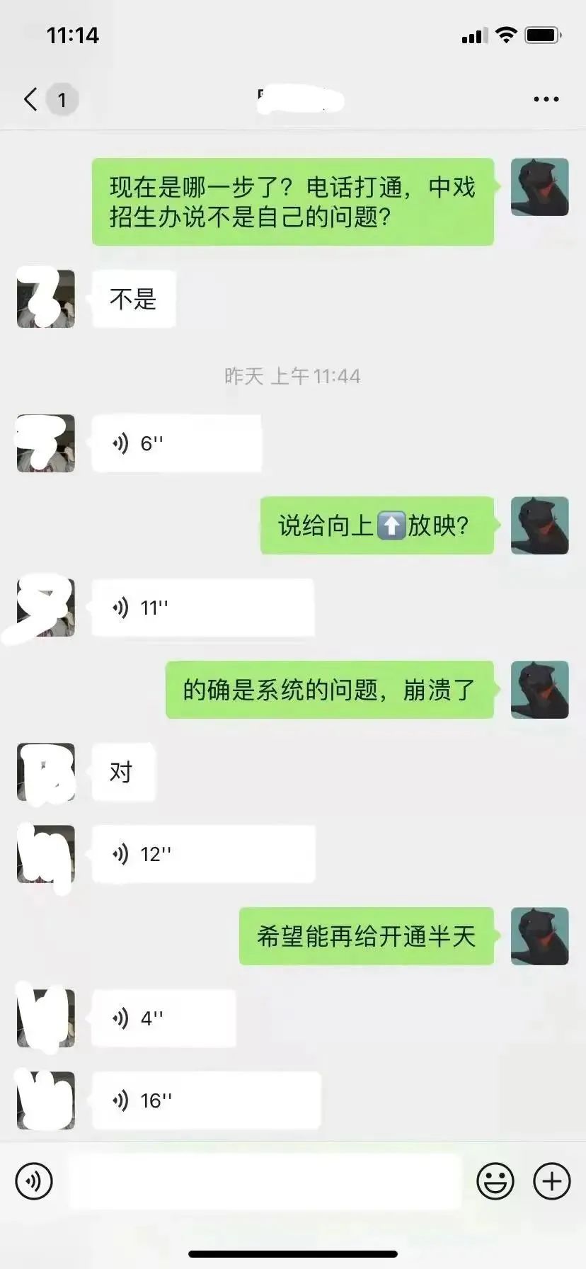 我们建了一个编导群,目前已经有超过三百人出现这种情况,里面有很多为考中戏付出过许多努力,多次复读的艺考生,因为系统原因不能上传,真的令人非常痛惜。