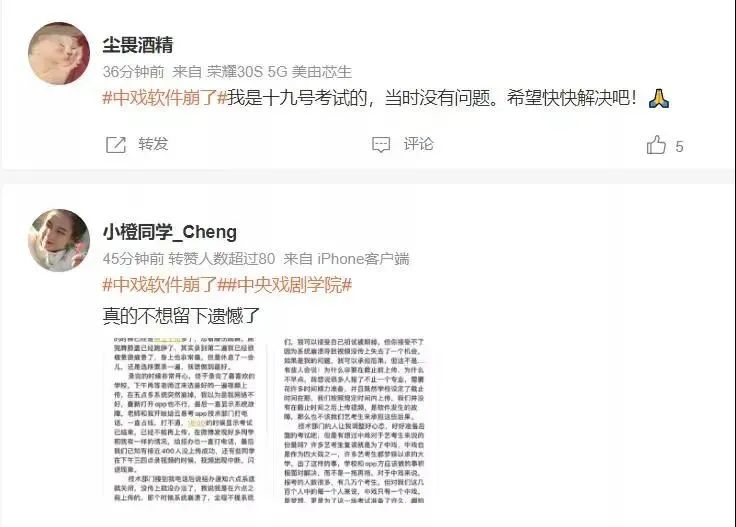 还有南艺和其他学校用这个软件,我真的很担忧会再次出现这种情况,希望软件、中戏技术部和招生办可以给一个正面回应。